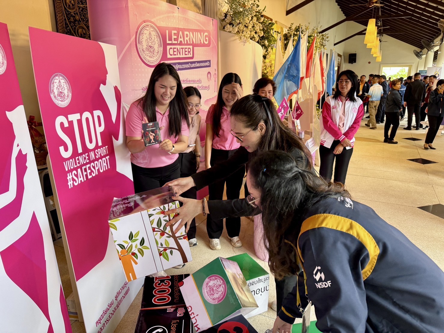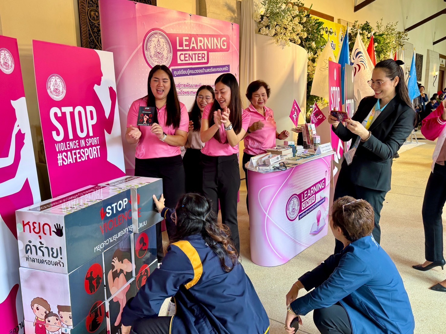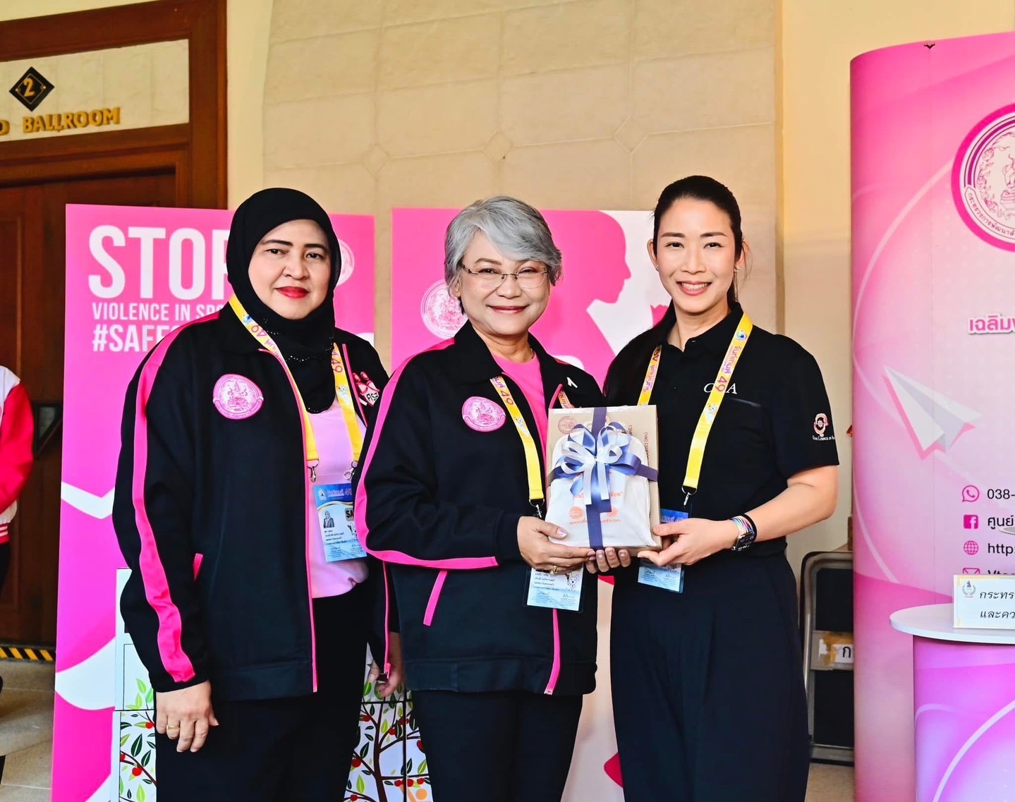 วันที่ 8 ธันวาคม 2567 เวลา 08.00 น. ณ ห้องประชุมแกรนด์บอลรูม โรงแรมมณีจันท์ รีสอร์ท จังหวัดจันทบุรี การกีฬาแห่งประเทศไทย จัดประชุมคณะกรรมการอำนวยการ การแข่งขันกีฬาแห่งชาติ ครั้งที่ 49 “จันท์เกมส์” โดย ดร.สุวรรณา ศิลปอาชา กรรมการสภาโอลิมปิกแห่งเอเชียด้านความเท่าเทียมระหว่างเพศ พร้อมด้วยนางสาวแรมรุ้ง วรวัธ อธิบดีกรมกิจการสตรีและสถาบันครอบครัว ได้ขึ้นเวทีกล่าวถึงปัญหาการล่วงละเมิดหรือคุกคามทางเพศในการกีฬา เพื่อนำปัญหาที่ถูกซุกซ่อนอยู่ หยิบยกขึ้นมาเป็นวาระสำคัญทางสังคม และร่วมผลักดันมาตรการการป้องกันและแก้ไขปัญหาการล่วงละเมิดหรือคุกคามทางเพศให้เกิดขึ้นในวงการกีฬาของไทย สร้างบรรยากาศการทำงานและการแข่งขันที่เคารพในสิทธิมนุษยชนนำไปสู่ Safe Sports ที่เป็นรูปธรรม ในการนี้นางวสมน ทิพณีย์ (Ph.D.) ผู้อำนวยการศูนย์เรียนรู้การพัฒนาสตรีและครอบครัวเฉลิมพระเกียรติสมเด็จพระเทพฯ 36 พรรษา จังหวัดชลบุรี พร้อมด้วยข้าราชการและเจ้าหน้าที่ ร่วมจัดนิทรรศการกิจกรรมรณรงค์การป้องกันและแก้ไขปัญหาการล่วงละเมิดหรือคุกคามทางเพศในการกีฬา ในการประชุมดังกล่าว