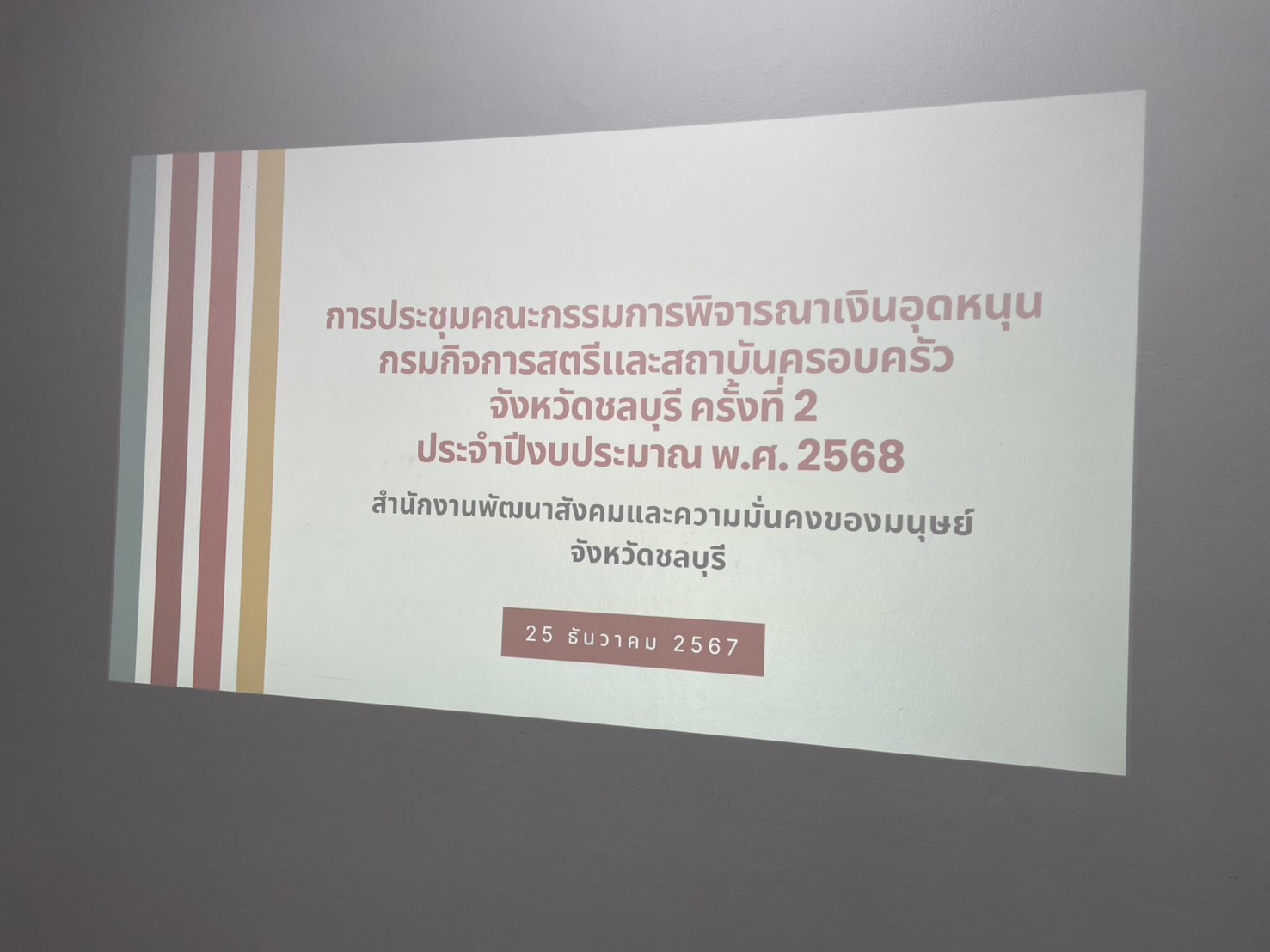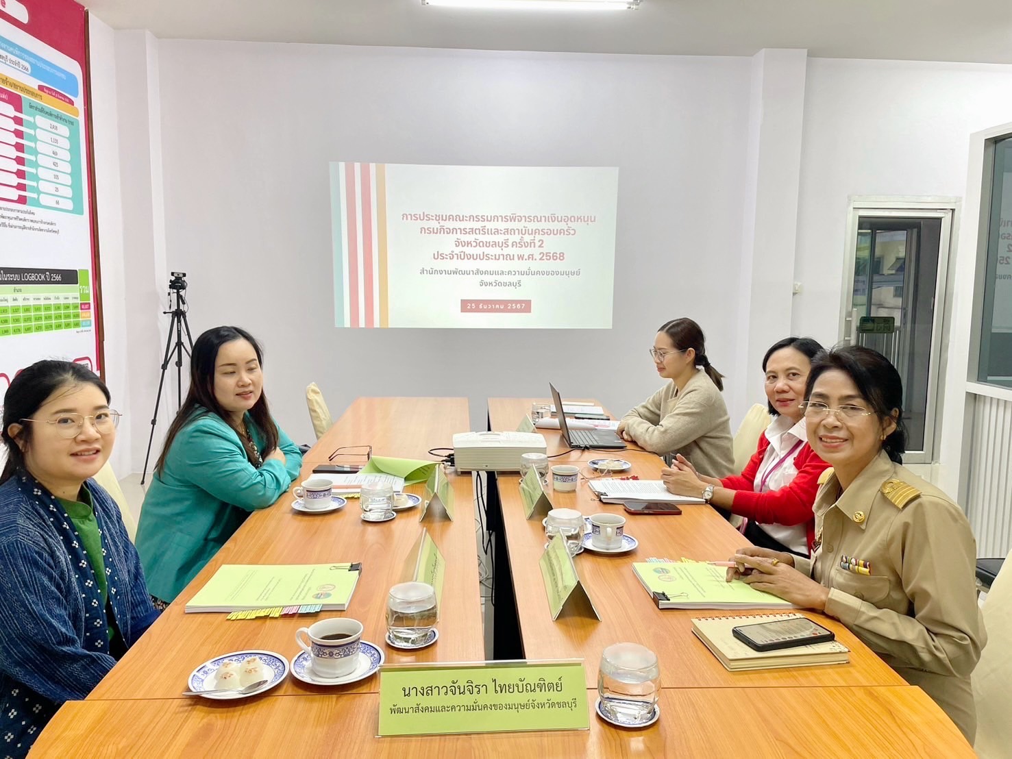 วันที่ 25 ธันวาคม 2567 เวลา 09.30 น. ณ ห้องประชุมแก้วกัลยา ชั้น 2 สำนักงานพัฒนาสังคมและความมั่นคงของมนุษย์จังหวัดชลบุรี นางสาวจันจิรา ไทยบัณฑิตย์ พัฒนาสังคมและความมั่นคงของมนุษย์จังหวัดชลบุรี เป็นประธานการประชุมคณะกรรมการพิจารณาเงินอุดหนุน กรมกิจการสตรีและสถาบันครอบครัว จังหวัดชลบุรี ครั้งที่ 2 ประจำปีงบประมาณ พ.ศ. 2568 ในการนี้ นางวสมน ทิพณีย์ (Ph.D.) ผู้อำนวยการศูนย์เรียนรู้การพัฒนาสตรีและครอบครัวเฉลิมพระเกียรติสมเด็จพระเทพฯ 36 พรรษา จังหวัดชลบุรี พร้อมด้วยนางสุนันทา วัดแช่ม พนักงานธุรการ ระดับ ส4 และนางสิราณี คิดหาทอง นักสังคมสงเคราะห์ เข้าร่วมประชุมฯ