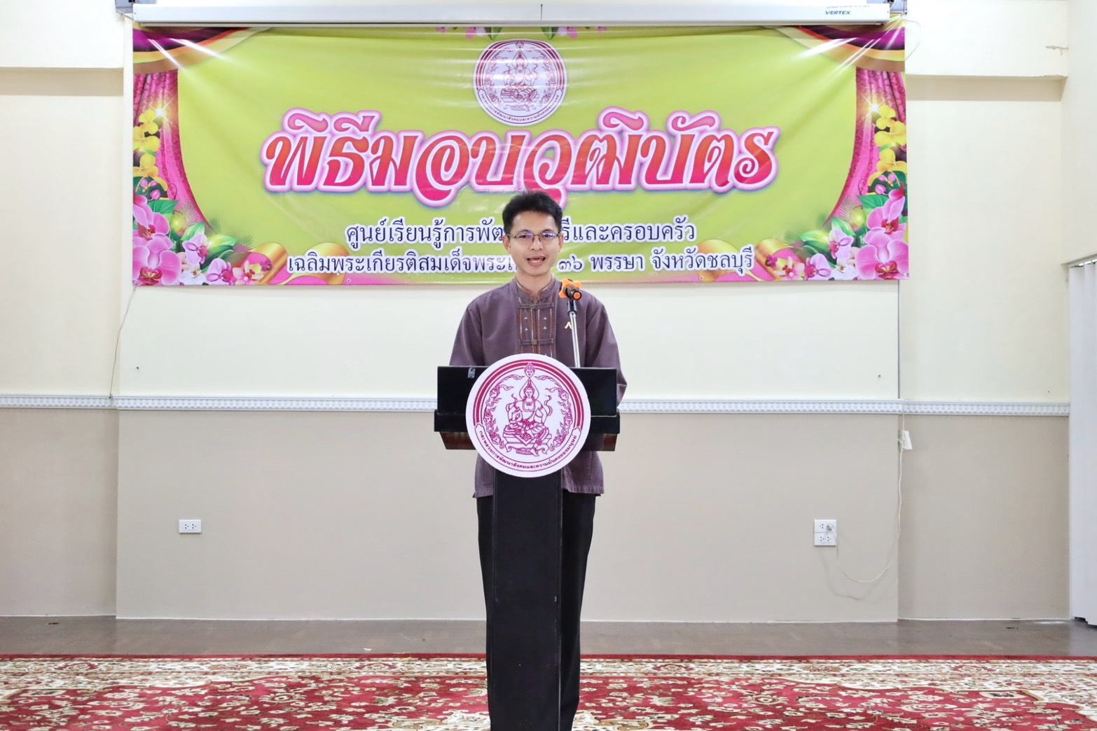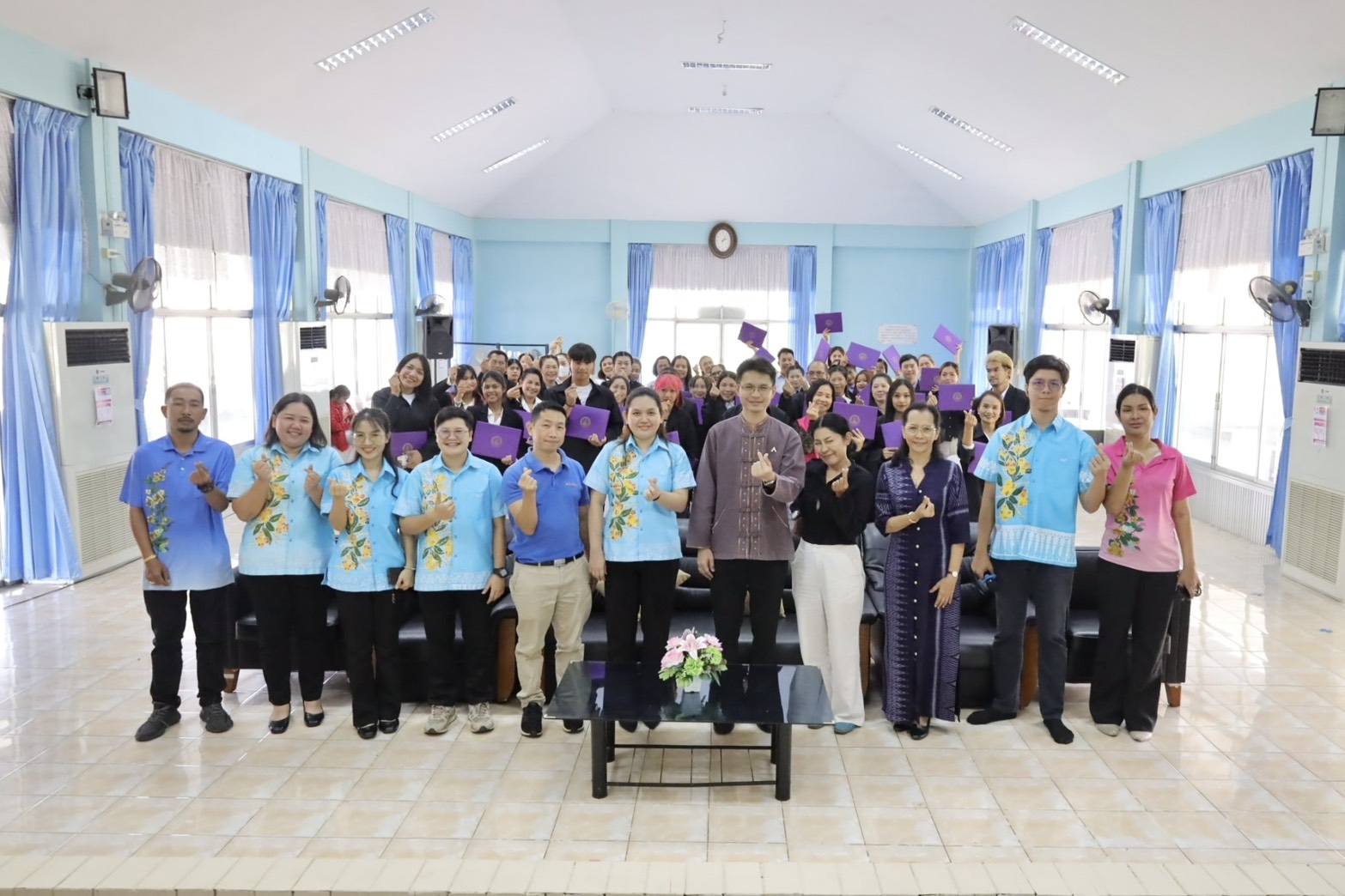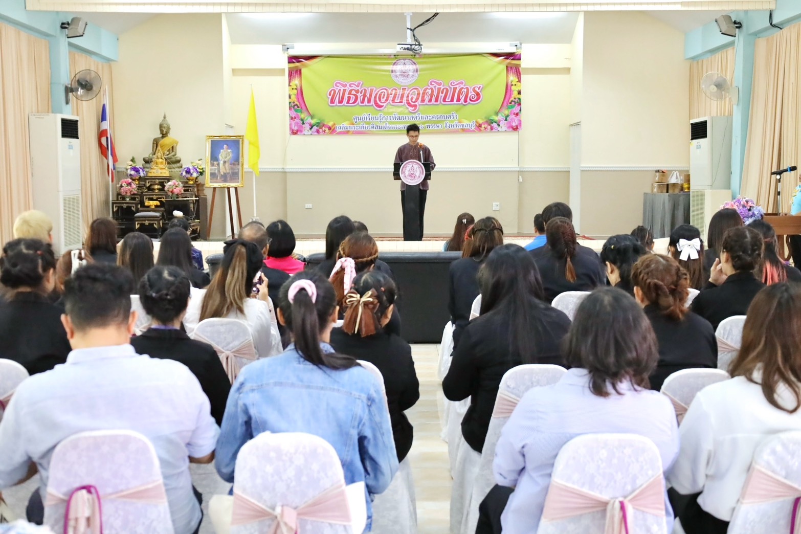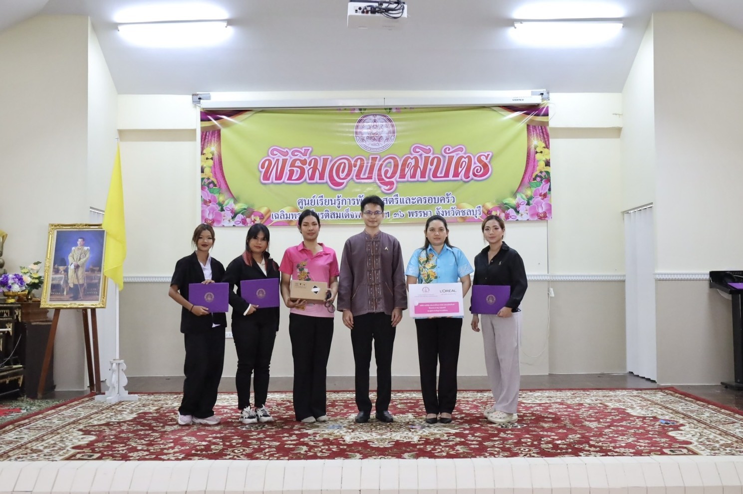 วันที่ 28 กุมภาพันธ์ 2568 เวลา 13.30 น. ณ อาคารอเนกประสงค์ ศูนย์เรียนรู้การพัฒนาสตรีและครอบครัวเฉลิมพระเกียรติสมเด็จพระเทพฯ 36 พรรษา จังหวัดชลบุรี นายนัธทวัฒน์ ธนโชติชัยพัชร์ ผู้อำนวยการศูนย์ฯ เป็นประธานมอบวุฒิบัตร และกล่าวให้โอวาทแก่ผู้สำเร็จการฝึกอบรมอาชีพ จำนวนทั้งสิ้น 44 คน โดยจำแนกตามหลักสูตร ดังนี้ หลักสูตรระยะสั้น 5 วัน แผนกบริการโรงแรม หลักสูตรการจัดดอกไม้ขั้นพื้นฐาน รุ่นที่ 1/2568 แผนกเสริมสวยสตรี หลักสูตรการแต่งหน้า – เกล้าผม รุ่นที่ 1/2568 แผนกตัดผมชาย หลักสูตรการตัดผมชายเบื้องต้น รุ่นที่ 2/2568 แผนกโภชนาการ หลักสูตรขนมไทยและน้ำสมุนไพรจัดเบรก หลักสูตร 10 วัน แผนกนวดแผนไทยและนวดประคบสมุนไพร หลักสูตรนวดฝ่าเท้าเพื่อสุขภาพ 60 ชั่วโมง รุ่นที่ 72/22/2568