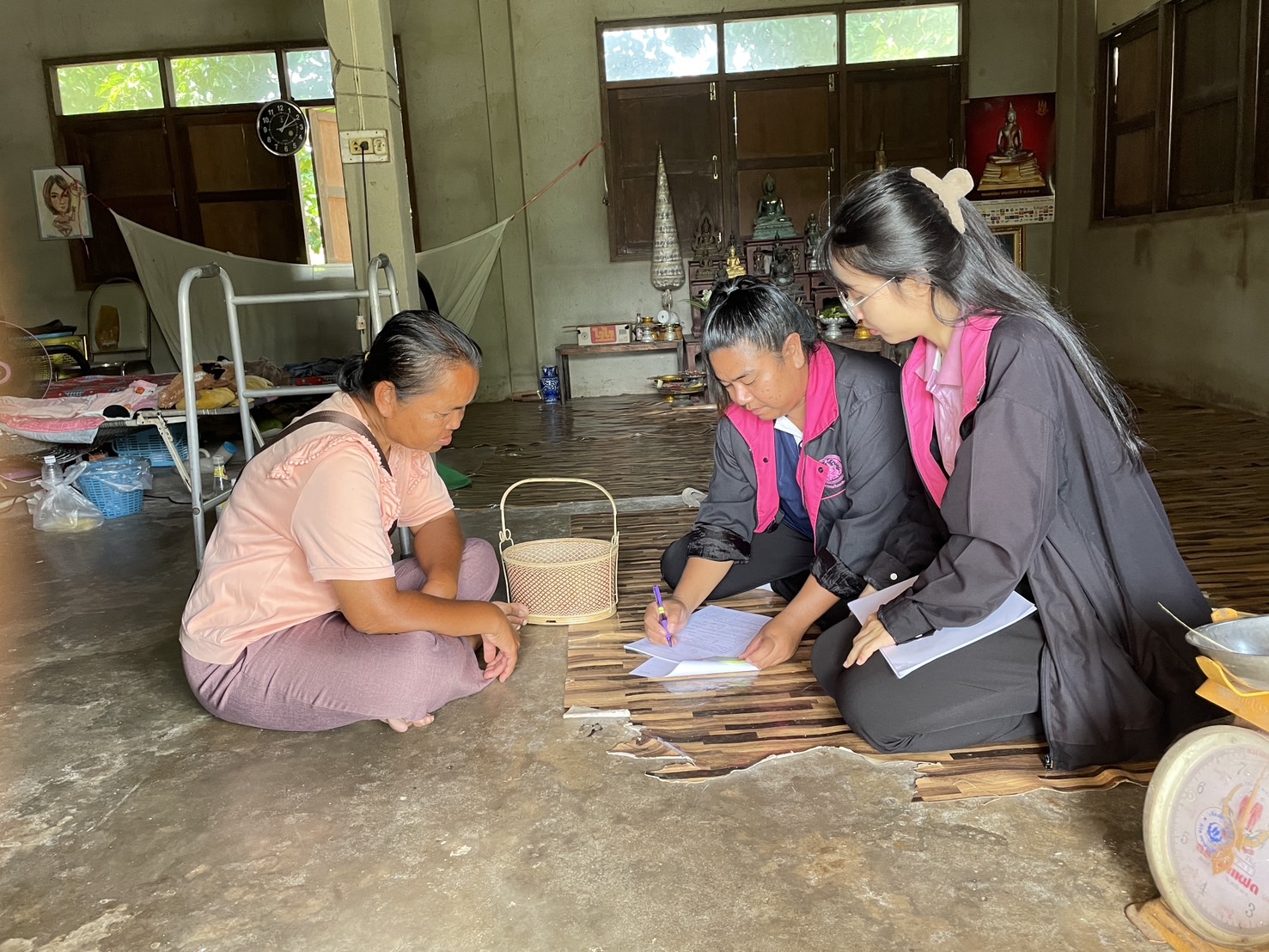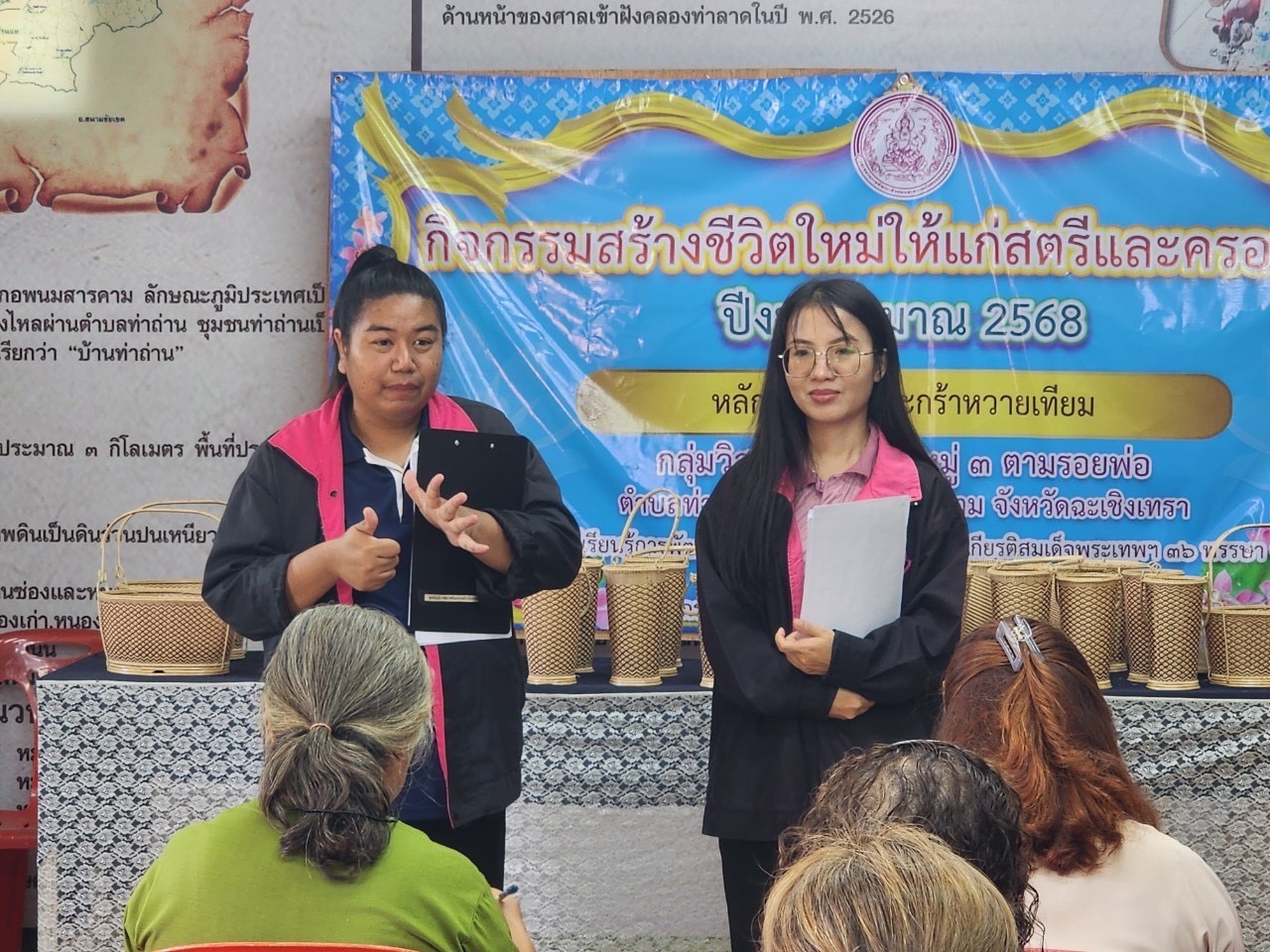 วันที่ 6 มีนาคม 2568 ณ ศูนย์การเรียนรู้เพื่อการพัฒนาชุมชนเข้มแข็งตามแนวปรัชญาเศรษฐกิจพอเพียง บ้านโคกหัวข้าว ตำบลท่าถ่าน อำเภอพนมสารคาม จังหวัดฉะเชิงเทรา นายนัธทวัฒน์ ธนโชติชัยพัชร์ ผู้อำนวยการศูนย์เรียนรู้การพัฒนาสตรีและครอบครัวเฉลิมพระเกียรติสมเด็จพระเทพฯ 36 พรรษา จังหวัดชลบุรี มอบหมายให้นางสาวณัฏฐนันธ์ ดีดวงพันธ์ นักจัดการงานทั่วไปปฏิบัติการ นางสาวนัฐถา เจริญผล เจ้าพนักงานธุรการ และนายอนุรักษ์ ทิพยรักษ์ เจ้าหน้าที่ช่วยปฏิบัติงานด้านขับรถยนต์ ลงพื้นที่สอบข้อเท็จจริงและสำรวจเยี่ยมบ้านกลุ่มอาชีพเพื่อสนับสนุนเงินอุดหนุนค่าแรงงานสตรี ตามโครงการพัฒนาทักษะอาชีพแก่ครัวเรือนเปราะบางสู่ความยั่งยืน กิจกรรมสร้างชีวิตใหม่ให้แก่สตรีและครอบครัว ปีงบประมาณ 2568 ให้แก่กลุ่มวิสาหกิจชุมชนหมู่ 3 ตามรอยพ่อ หลักสูตร การสานตะกร้าหวายเทียม