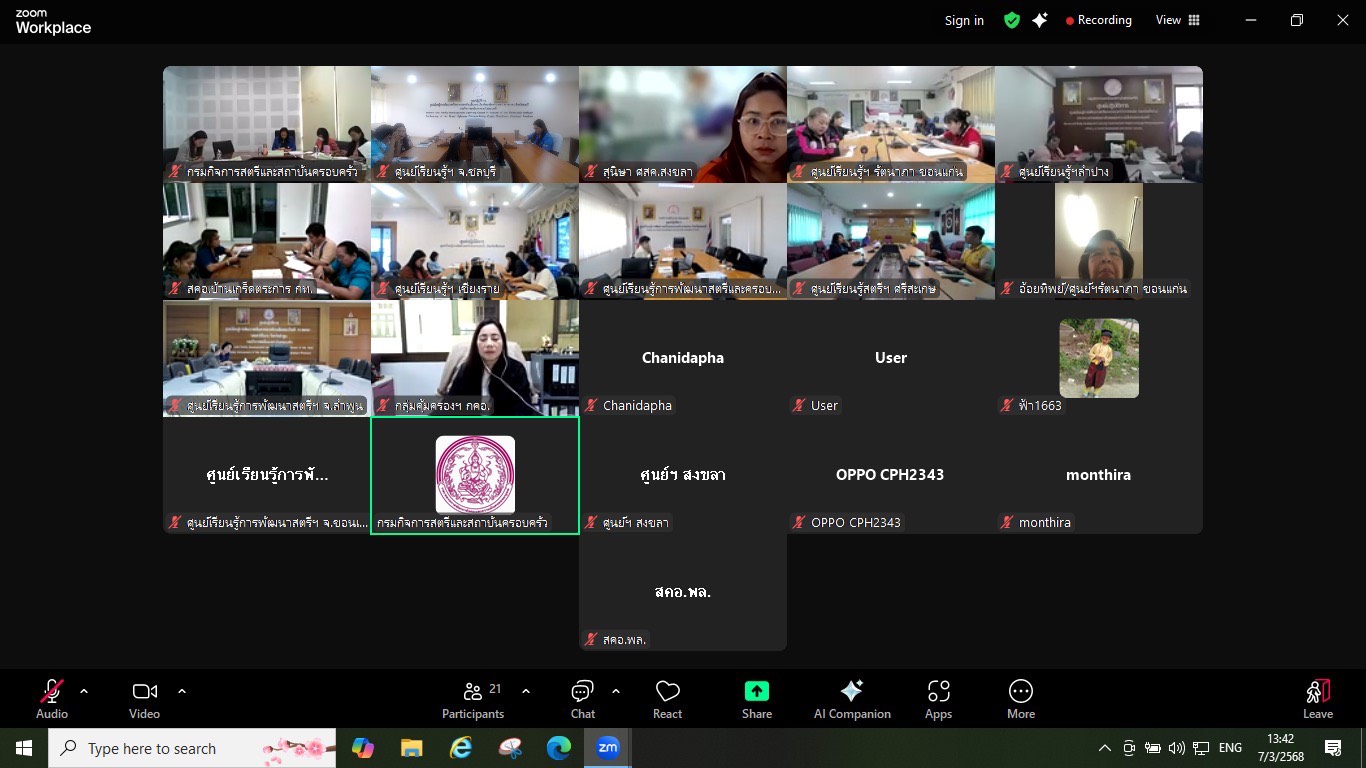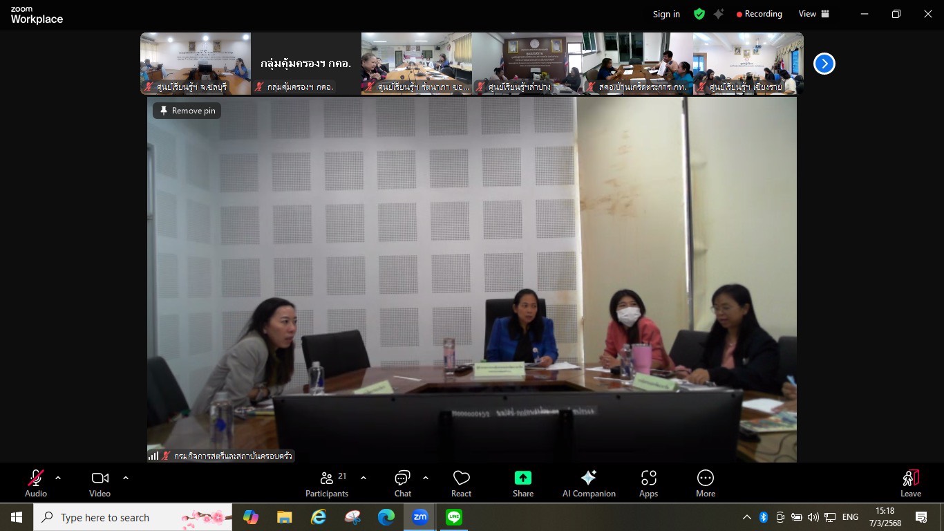 วันที่ 7 มีนาคม 2568 เวลา 13.00 น. ณ ห้องประชุมศูนย์ปฏิบัติการศูนย์เรียนรู้การพัฒนาสตรีและครอบครัวเฉลิมพระเกียรติสมเด็จพระเทพฯ 36 พรรษา จังหวัดชลบุรี กองคุ้มครองและพัฒนาอาชีพ จัดประชุมคณะทำงานพัฒนาองค์การรายหมวด (PMQA) หมวด 3 การให้ความสำคัญกับผู้รับบริการและผู้มีส่วนได้ส่วนเสีย เพื่อรายงานผลการดำเนินงานฯ ประจำปี 2567 และร่วมหารือในการจัดทำ (ร่าง) แผนพัฒนาองค์กรฯ ประจำปี 2568 ในการนี้ นายนัธทวัฒน์ ธนโชติชัยพัชร์ ผู้อำนวยการศูนย์ฯ มอบหมายให้ข้าราชการและเจ้าหน้าที่ เข้าร่วมประชุมฯ ผ่านระบบ Zoom Meeting