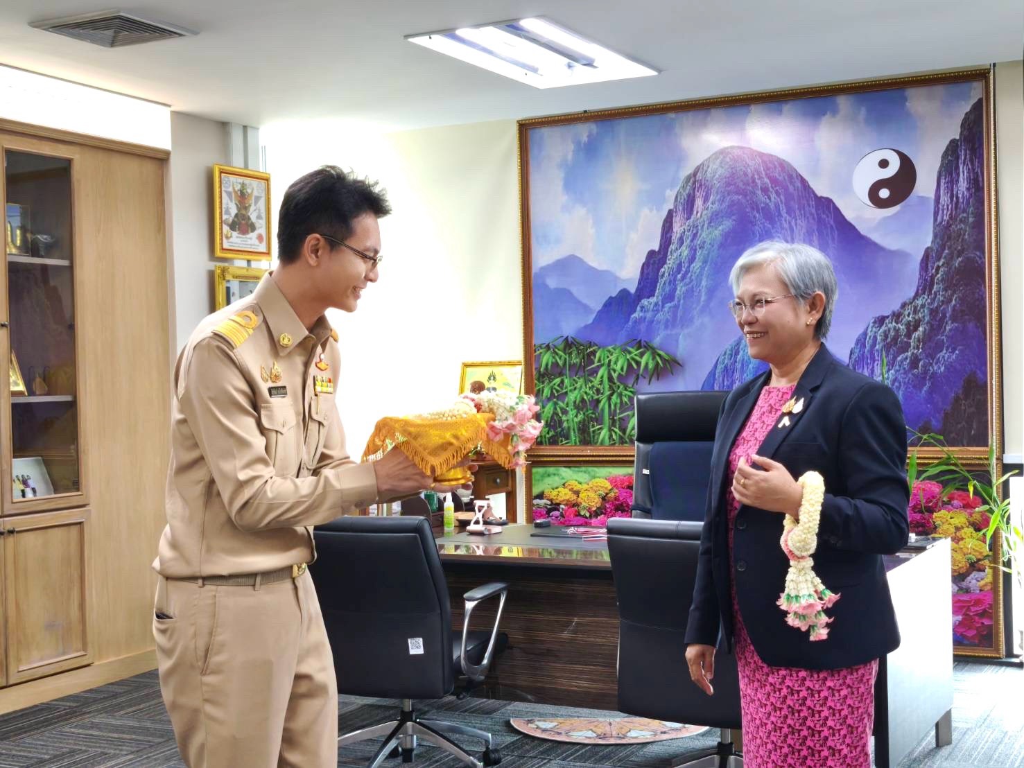 วันที่ 7 มีนาคม 2568 นายนัธทวัฒน์ ธนโชติชัยพัชร์ ผู้อำนวยการศูนย์เรียนรู้การพัฒนาสตรีและครอบครัวเฉลิมพระเกียรติสมเด็จพระเทพฯ 36 พรรษา จังหวัดชลบุรี เข้าพบนางสาวแรมรุ้ง วรวัธ อธิบดีกรมกิจการสตรีและสถาบันครอบครัว เพื่อรายงานตัวการเข้าดำรงตำแหน่งผู้อำนวยการศูนย์ฯ พร้อมทั้งหารือการขับเคลื่อนการทำงานของศูนย์ฯ เพื่อให้เกิดผลสัมฤทธิ์ และมีประสิทธิภาพต่อไป