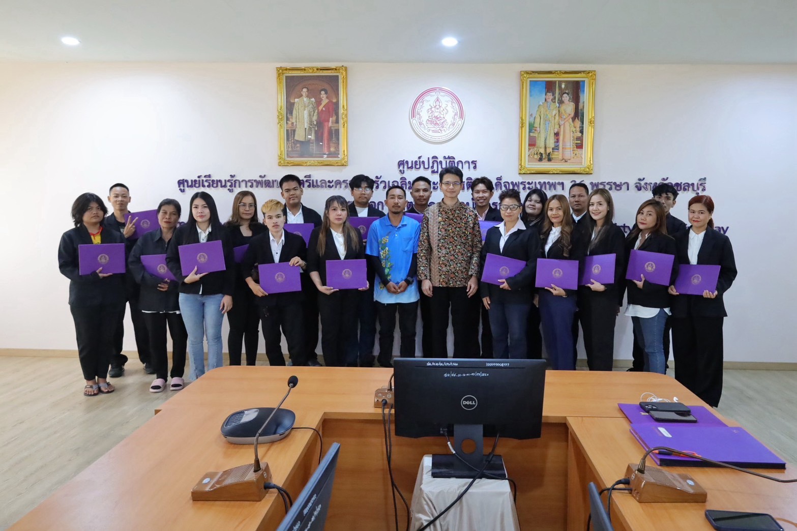 วันที่​ 21 มีนาคม ​2568 เวลา 14.30 น. ณ ห้องประชุมศูนย์ปฏิบัติการศูนย์เรียนรู้การพัฒนาสตรีและครอบครัวเฉลิมพระเกียรติสมเด็จพระเทพฯ 36 พรรษา จังหวัดชลบุรี นายนัธทวัฒน์ ธนโชติชัยพัชร์ ผู้อำนวยการศูนย์ฯ เป็นประธานมอบวุฒิบัตร และกล่าวให้โอวาทแก่ผู้สำเร็จการฝึกอบรมอาชีพ​แผนกตัดผม หลักสูตรการตัดผมชายเบื้องต้น รุ่นที่ 3 โดยเป็นเพศชาย จำนวน 7 คน เพศหญิง จำนวน 12 คน และ LGBTQ จำนวน 1 คน รวมจำนวนทั้งสิ้น 20 คน