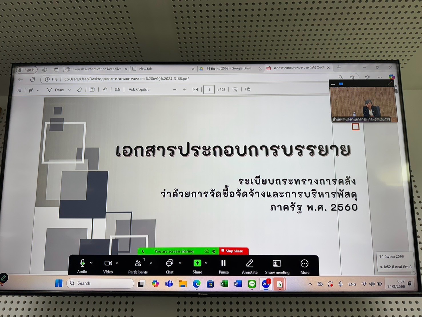 ระหว่างวันที่ 24 – 26 มีนาคม 2568 ณ ห้องประชุมดรุณวิถี ชั้น 11 โซนบี กรมกิจการเด็กและเยาวชน กระทรวงการพัฒนาสังคมและความมั่นคงของมนุษย์ นางสาวราภรณ์ พงศ์พนิตานนท์ ผู้เชี่ยวชาญเฉพาะด้านครอบครัว เป็นประธานการประชุมเชิงปฏิบัติการเพื่อพัฒนาบุคลากรให้มีสมรรถนะและค่านิยมการทำงานที่มีความเป็นมืออาชีพ : การพัฒนาสมรรถนะด้านการเงินการคลังเพื่อเสริมสร้างประสิทธิภาพในการปฏิบัติงาน โดยมีวัตถุประสงค์เพื่อส่งเสริมให้บุคลากรมีความรู้ ความเข้าใจในการปฏิบัติงานด้านการเงินการคลัง ด้านพัสดุ เป็นไปในทิศทางเดียวกัน ซึ่งจะนำไปสู่การทำงานได้อย่างถูกต้องมีประสิทธิภาพ รวมถึงได้รับทราบประเด็นปัญหา ข้อคลาดเคลื่อนของการปฏิบัติงานและแลกเปลี่ยนเรียนรู้ประสบการณ์ ข้อคิดเห็น ปัญหา และแนวทางแก้ไขร่วมกัน ในการนี้ นายนัธทวัฒน์ ธนโชติชัยพัชร์ ผู้อำนวยการศูนย์เรียนรู้การพัฒนาสตรีและครอบครัวเฉลิมพระเกียรติสมเด็จพระเทพฯ 36 พรรษา จังหวัดชลบุรี มอบหมายให้นางนภารัตน์ กันพา นักวิเคราะห์นโยบายและแผน ปฏิบัติหน้าที่เจ้าหน้าที่การเงินและบัญชี และนางสาวรัชนี สือนิ นักวิชาการพัสดุ เข้าร่วมการประชุมฯ