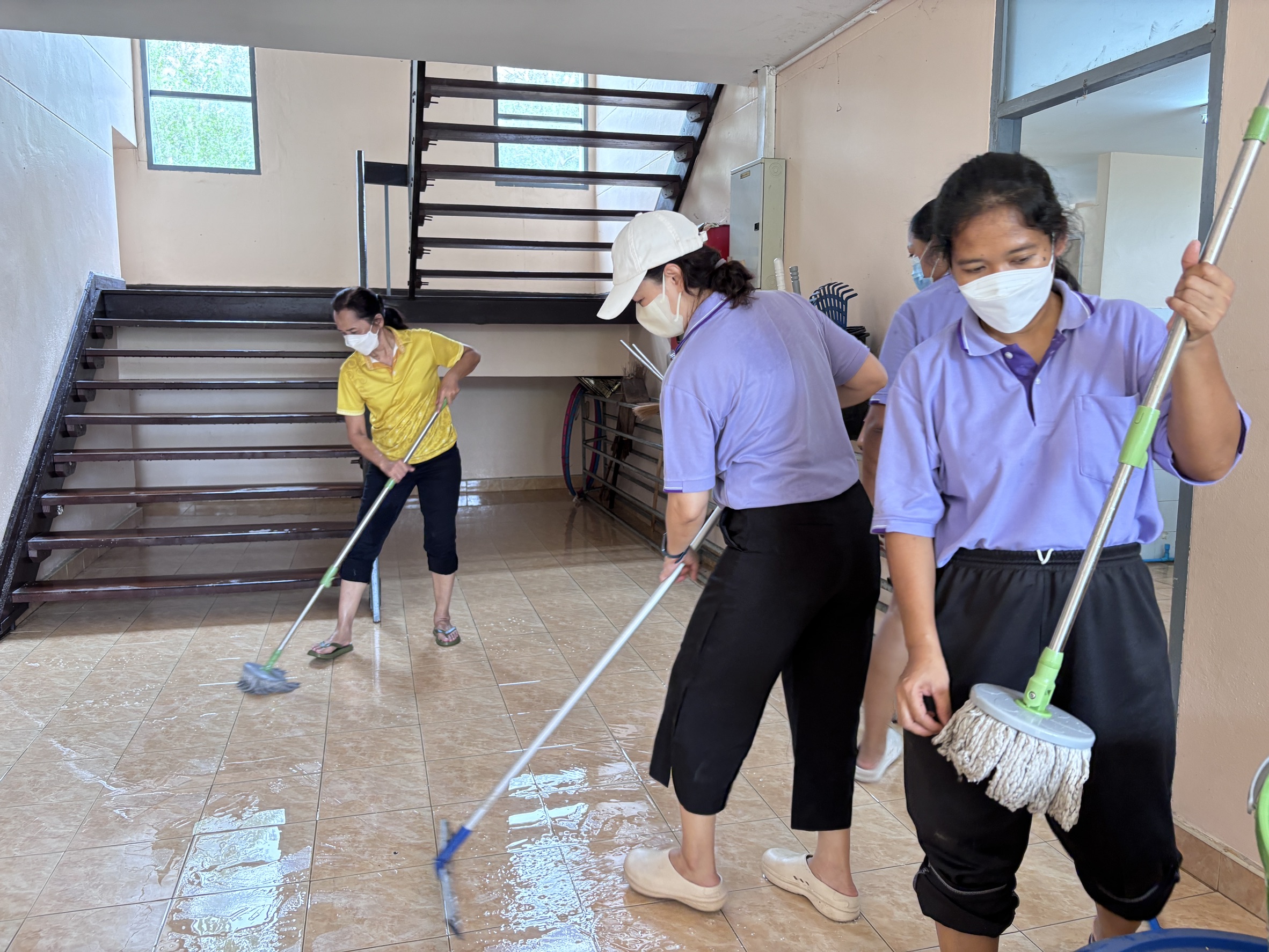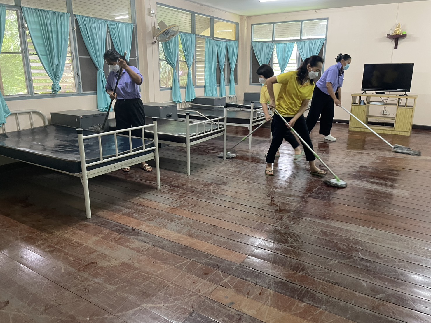วันที่ 31 มีนาคม 2568 เวลา 09.00 น. นายนัธทวัฒน์ ธนโชติชัยพัชร์ ผู้อำนวยการศูนย์เรียนรู้การพัฒนาสตรีและครอบครัวเฉลิมพระเกียรติสมเด็จพระเทพฯ 36 พรรษา จังหวัดชลบุรี มอบหมายให้นางสุนันทา วัดแช่ม พนักงานธุรการระดับ ส4 นางธนภร สัตนาโค พนักงานธุรการระดับ ส4 นางอังสุมารินทร์ คำสอน เจ้าพนักงานพัฒนาสังคม และผู้เข้ารับการฝึกอบรมอาชีพแผนกนวดแผนไทยและนวดประคบสมุนไพร ร่วมกันทำกิจกรรม 5 ส. เรือนนอน 5 เพื่อสร้างความเป็นระเบียบเรียบร้อย ปรับปรุงสภาพแวดล้อมให้มีความสะอาด น่าอยู่ ตามแผนการขับเคลื่อนวัฒนธรรมองค์กร