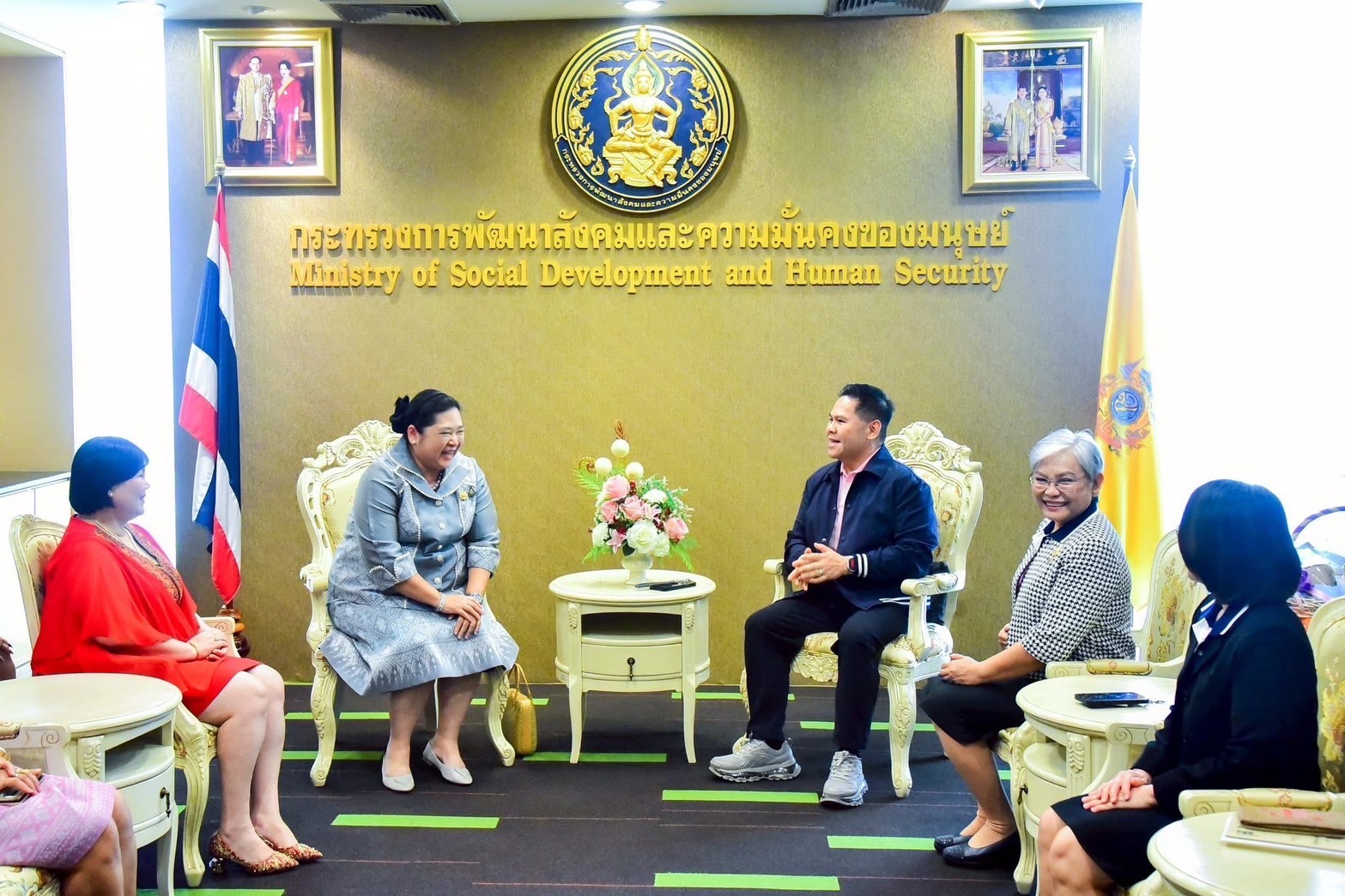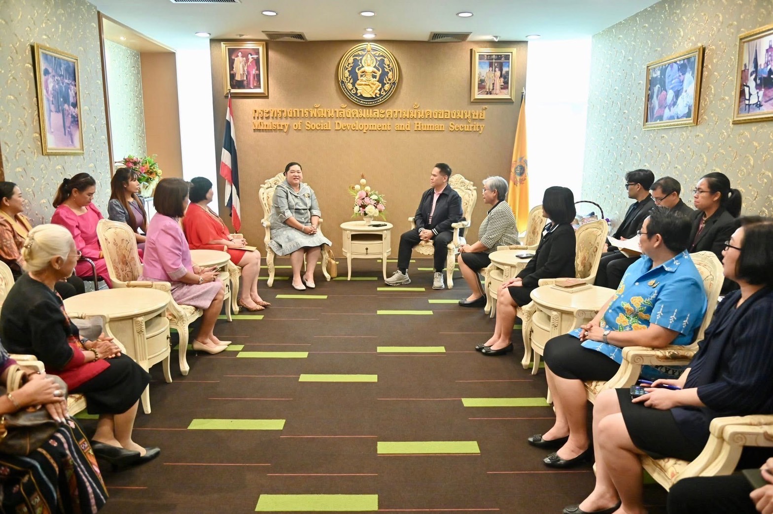 วันที่ 11 มิถุนายน 2568 เวลา 11.00 น. ณ ห้องรับรอง ชั้น 9 กระทรวงการพัฒนาสังคมและความมั่นคงของมนุษย์ นายวราวุธ ศิลปอาชา รัฐมนตรีว่าการกระทรวงการพัฒนาสังคมและความมั่นคงของมนุษย์ ให้การต้อนรับนางสุกุมล คุณปลื้ม ประธานคณะกรรมการพัฒนาสตรีจังหวัดชลบุรี พร้อมคณะผู้นําสตรีจังหวัดภาคกลาง เข้าพบและหารือ โดยมีนางสาวแรมรุ้ง วรวัธ อธิบดีกรมกิจการสตรีและสถาบันครอบครัว และคณะผู้บริหารกรมกิจการสตรีและสถาบันครอบครัว เข้าร่วมให้การต้อนรับ พร้อมด้วยนายนัธทวัฒน์ ธนโชติชัยพัชร์ ผู้อำนวยการศูนย์เรียนรู้การพัฒนาสตรีและครอบครัวเฉลิมพระเกียรติสมเด็จพระเทพฯ 36 พรรษา จังหวัดชลบุรี ร่วมให้การต้อนรับ