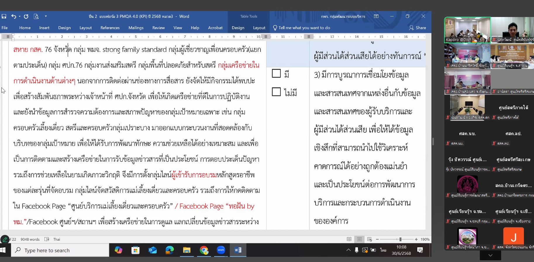 วันที่ 30 มิถุนายน 2568 เวลา 09.30 น. กลุ่มพัฒนาระบบบริหาร จัดประชุมคณะทำงานพัฒนาองค์การรายหมวด (จัดทำข้อมูล) (หมวด 3) เพื่อร่วมกันจัดทำข้อมูลประกอบตัวชี้วัดการประเมินส่วนราชการตามมาตรการปรับปรุง ประสิทธิภาพในการปฏิบัติราชการของส่วนราชการ ประจำปีงบประมาณ พ.ศ. 2568 ในการนี้ นายนัธทวัฒน์ ธนโชติชัยพัชร์ ผู้อำนวยการศูนย์เรียนรู้การพัฒนาสตรีและครอบครัวเฉลิมพระเกียรติสมเด็จพระเทพฯ 36 พรรษา จังหวัดชลบุรี พร้อมด้วยข้าราชการและเจ้าหน้าที่ เข้าร่วมการประชุมฯ ผ่านระบบ Zoom Meeting