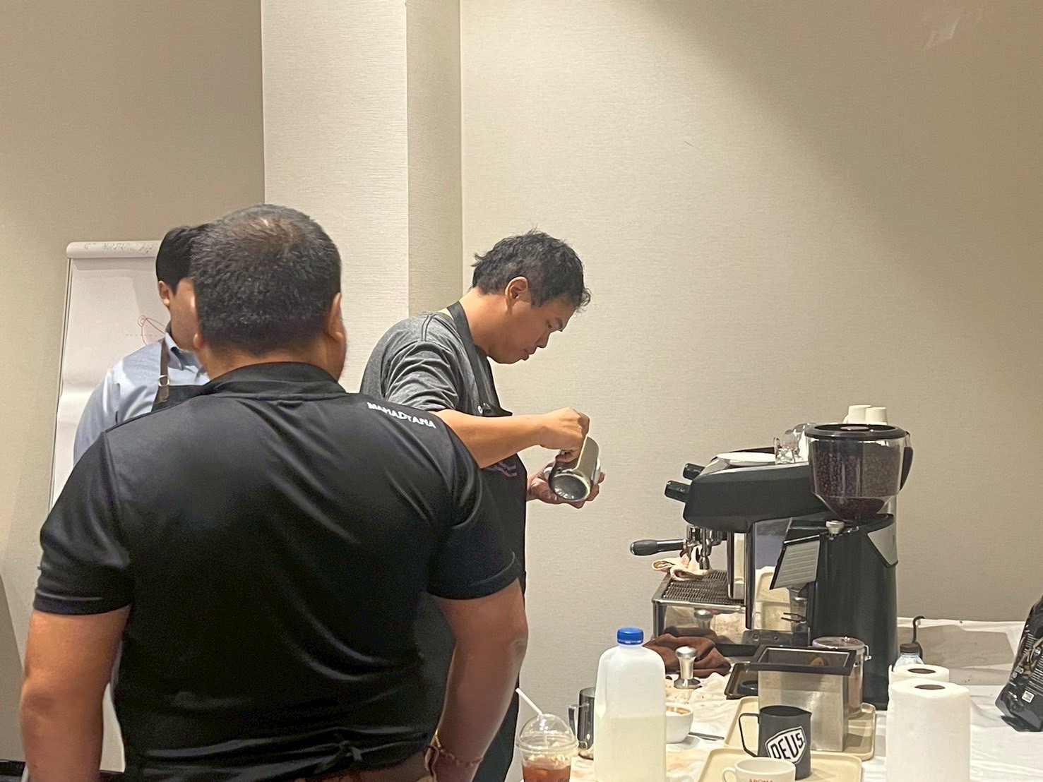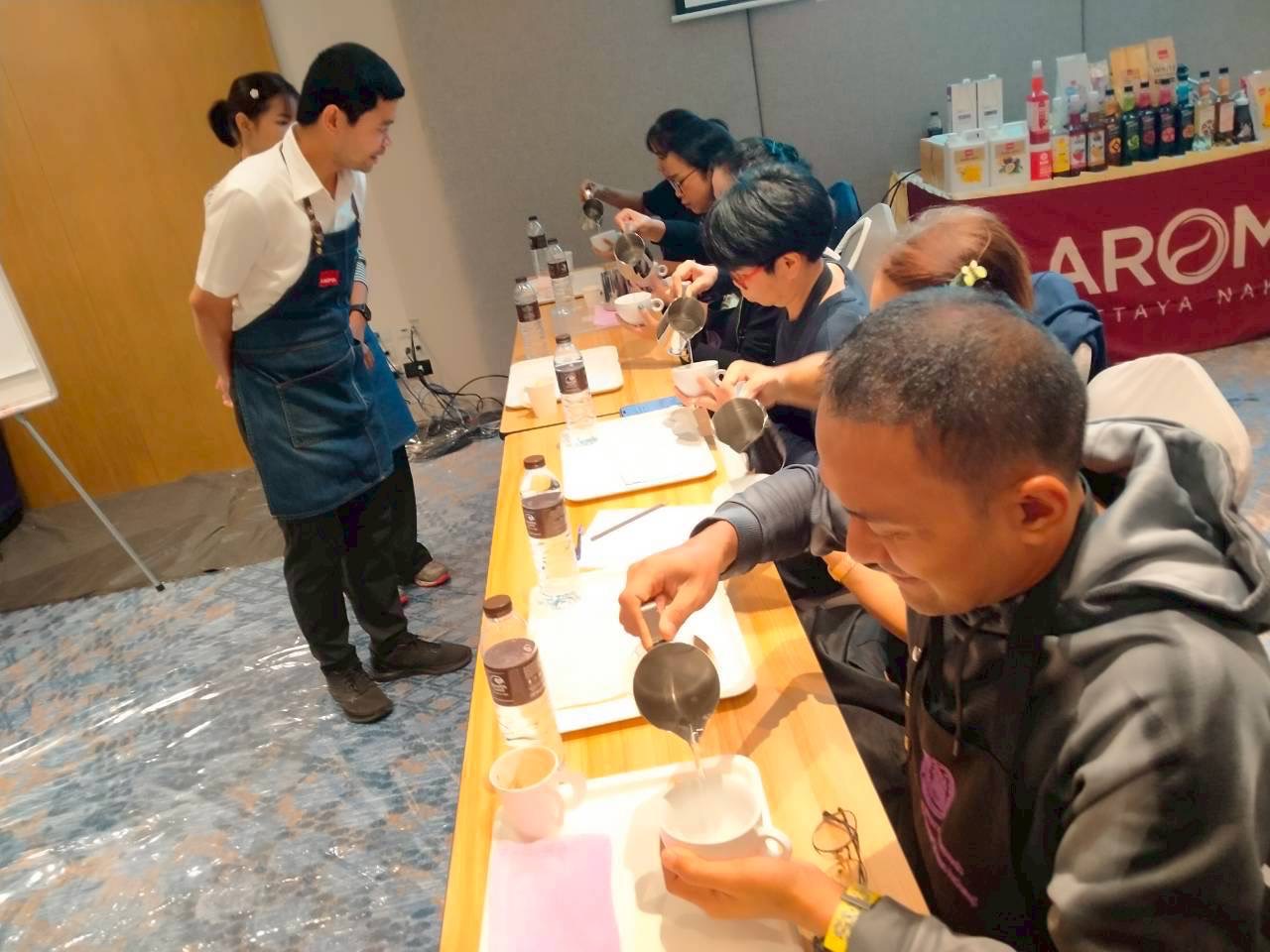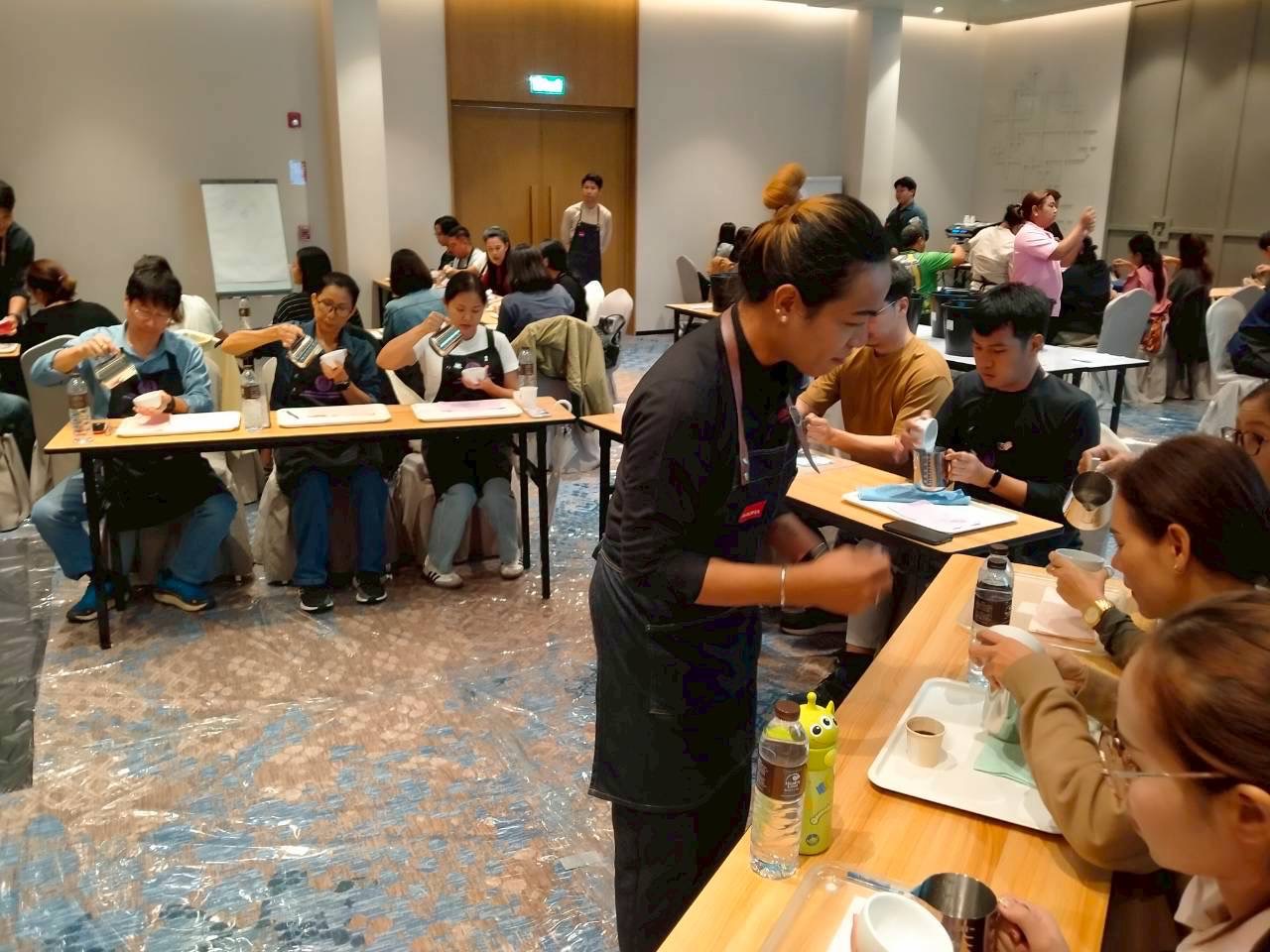 - หลักสูตร Barista Upskill (cafe management and latte art) รุ่นที่ 14 หัวข้อ “พื้นฐานการเทลาย latte art ใบไม้” จำนวน 45 คน