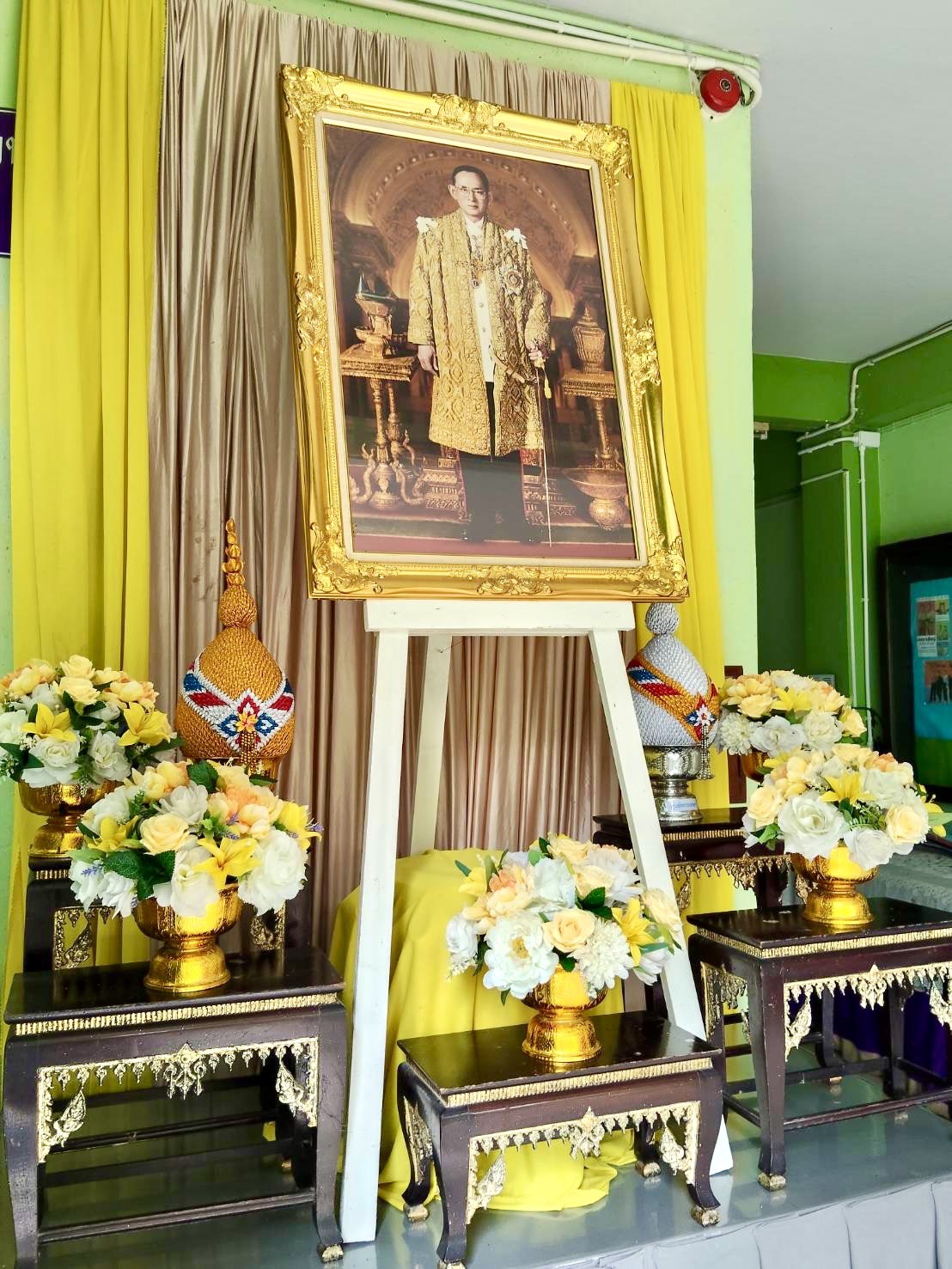 วันที่ 10 ตุลาคม 2568 ณ ศูนย์เรียนรู้การพัฒนาสตรีและครอบครัวเฉลิมพระเกียรติสมเด็จพระเทพฯ 36 พรรษา จังหวัดชลบุรี นายนัธทวัฒน์ ธนโชติชัยพัชร์ ผู้อำนวยการศูนย์ฯ มอบหมายให้ นายฤทธิเดช มิ่งเชื้อ นักวิชาการอบรมและฝึกอาชีพ นายปิยพงศ์ จงประจันต์ และนายอนันต์ เวฬุวนารักษ์ เจ้าหน้าที่ช่วยปฏิบัติงานด้านคนสวน ดำเนินการจัดตั้งโต๊ะหมู่ประดิษฐานพระบรมฉายาลักษณ์พระบาทสมเด็จพระบรมชนกาธิเบศร มหาภูมิพลอดุลยเดชมหาราช บรมนาถบพิตร พร้อมเครื่องราชสักการะ “วันนวมินทรมหาราช” 13 ตุลาคม บริเวณอาคารสำนักงาน ระหว่างวันที่ 1 – 31 ตุลาคม 2568 เพื่อแสดงความจงรักภักดีและน้อมรำลึกในพระมหากรุณาธิคุณที่ทรงมีแก่พสกนิกรชาวไทย