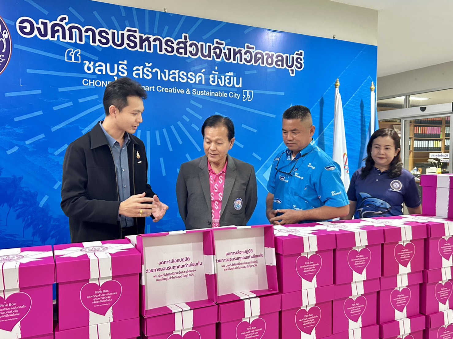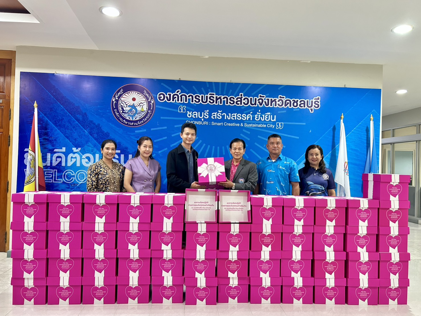 ส่งมอบกล่องของขวัญ (Pink Box) “ของขวัญสร้างแรงบันดาลใจ แทนความห่วงใย เพื่อสร้างสตรีไทยมั่นคง” ให้แก่สำนักงานพัฒนาสังคมและความมั่งคงของมนุษย์จังหวัดชลบุรี และองค์การบริหารส่วนจังหวัดชลบุรี