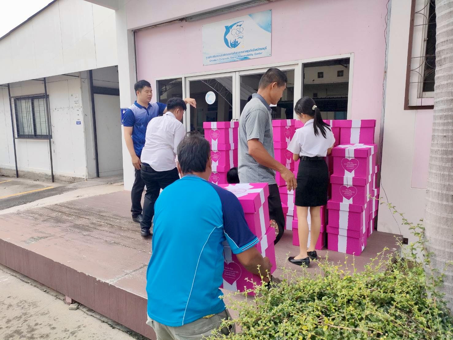 เวลา 11.30 น. ณ สำนักงานพัฒนาสังคมและความมั่นคงของมนุษย์จังหวัดชลบุรี โดยมีนางสาวจันจิรา ไทยบัณฑิตย์ พัฒนาสังคมและความมั่นคงของมนุษย์จังหวัดชลบุรี เป็นผู้รับมอบจำนวน 50 กล่อง
