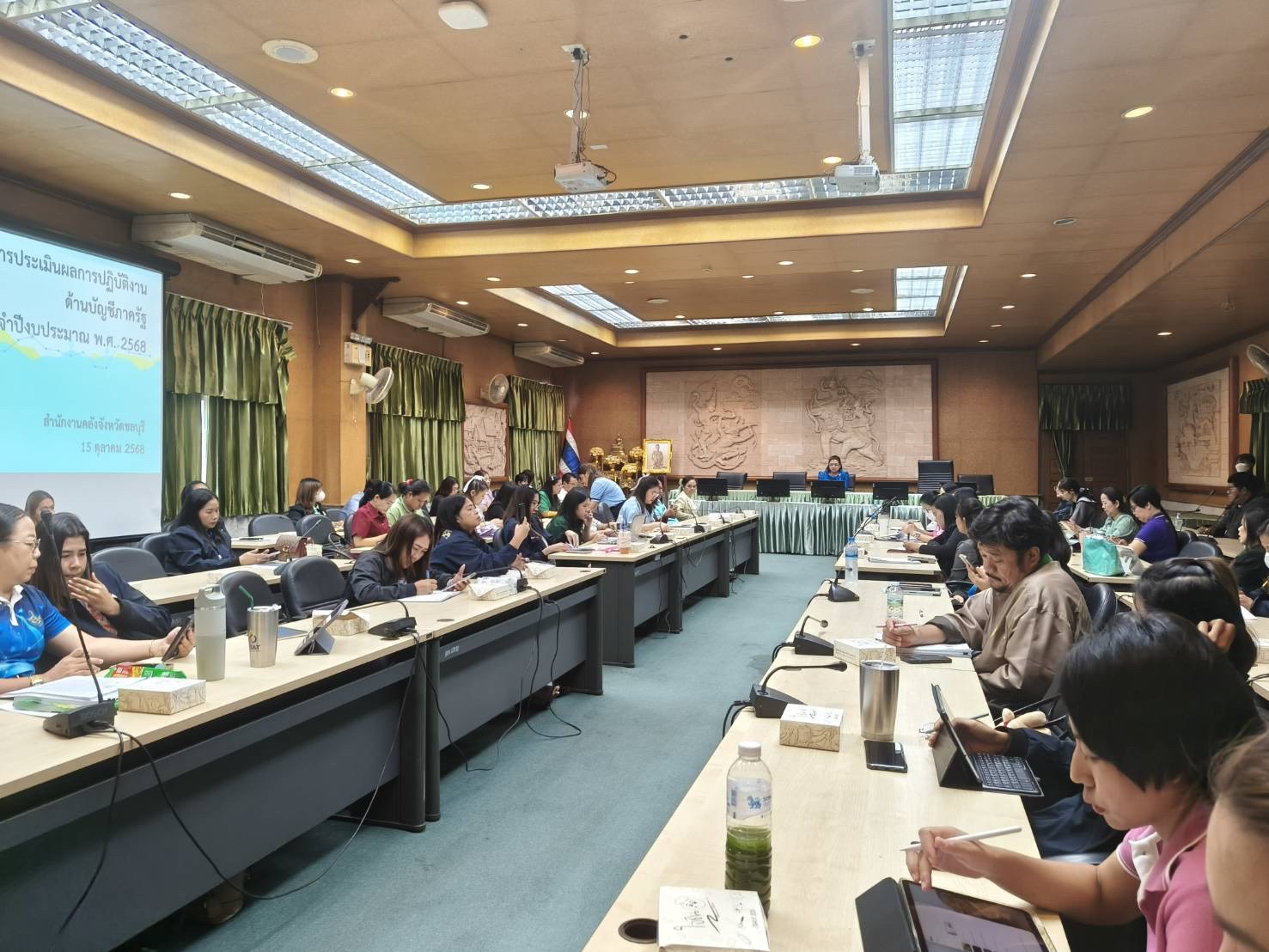 วันที่ 15 กันยายน 2568 เวลา 09.00 น. ณ ห้องประชุมชลบุรี ชั้น 3 ศาลากลางจังหวัดชลบุรี สำนักงานคลังจังหวัดชลบุรีจัดการประชุมชี้แจงแนวทางการประเมินผลการปฎิบัติงานด้านบัญชีภาครัฐ ประจำปีงบประมาณ พ.ศ. 2568 สำหรับหน่วยเบิกจ่ายในจังหวัดชลบุรี โดยมีนางสุภาภรณ์ จุลละสุภา คลังจังหวัดชลบุรี เป็นประธานการประชุม มีวัตถุประสงค์เพื่อให้หน่วยเบิกจ่ายมีความเข้าใจ และประเมินผลคุณภาพและความสำเร็จในการจัดทำบัญชีและรายงานการเงินของหน่วยงาน ตลอดจนสามารถจัดทำบัญชีได้อย่างถูกต้องตามแนวทางการประเมินผลการปฎิบัติงานด้านบัญชีภาครัฐ ประจำปีงบประมาณ พ.ศ. 2568 ในการนี้ นายนัธทวัฒน์ ธนโชติชัยพัชร์ ผู้อำนวยการศูนย์เรียนรู้การพัฒนาสตรีและครอบครัวเฉลิมพระเกียรติสมเด็จพระเทพฯ 36 พรรษา จังหวัดชลบุรี มอบหมายให้นางนภารัตน์ กันพา นักวิเคราะห์นโยบายและแผน ปฏิบัติหน้าที่เจ้าหน้าที่การเงินและบัญชี และนางสาวธัญวรัตน์ วาจ่าง นักจัดการงานทั่วไป เข้าร่วมประชุม