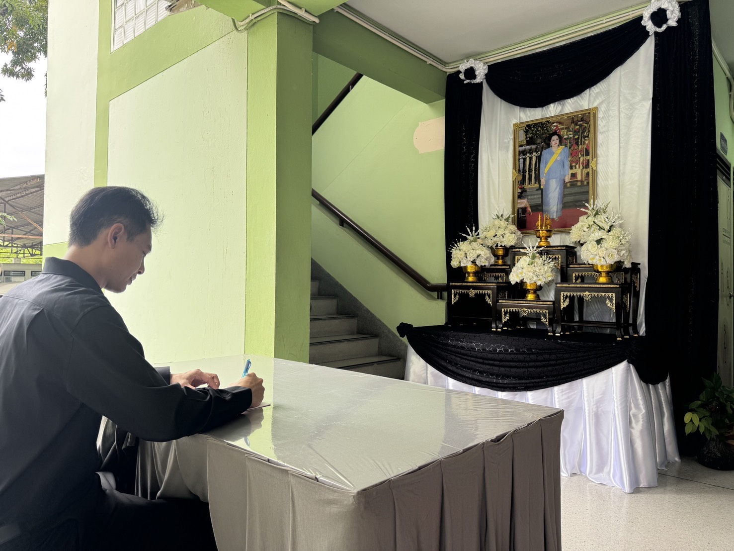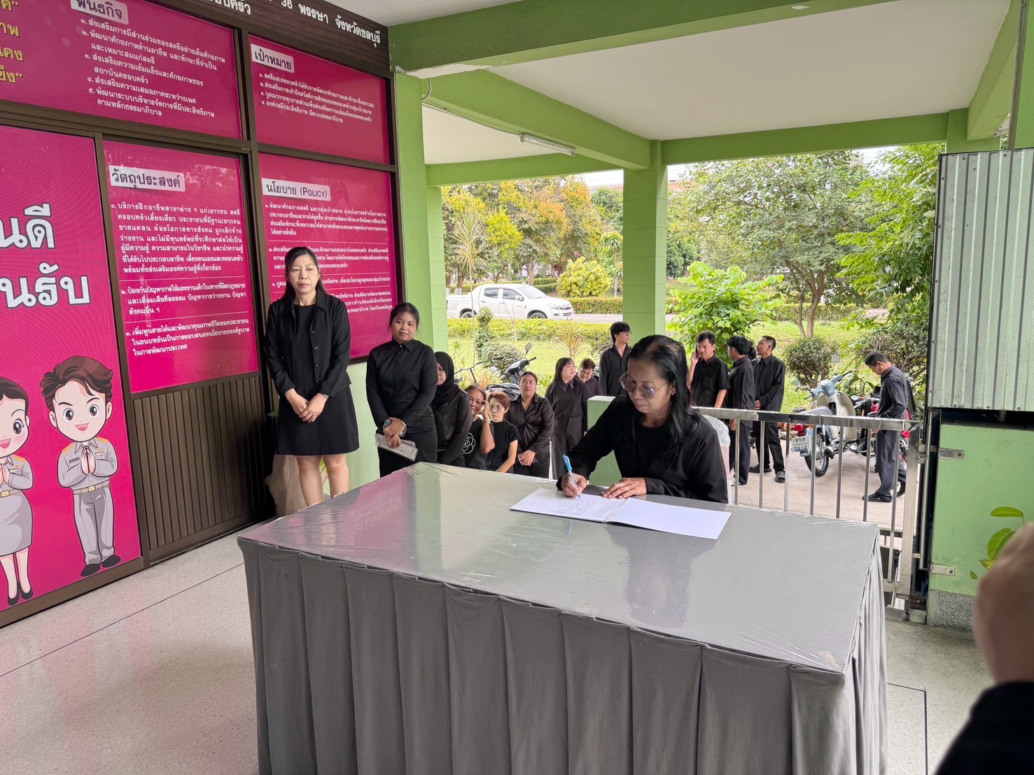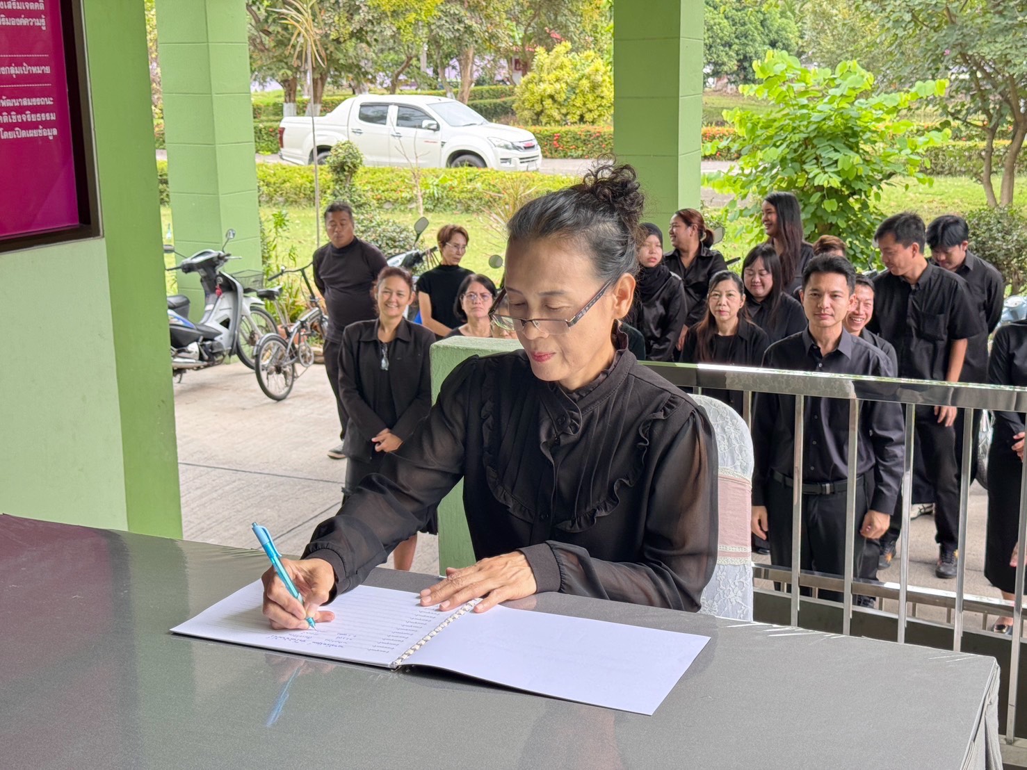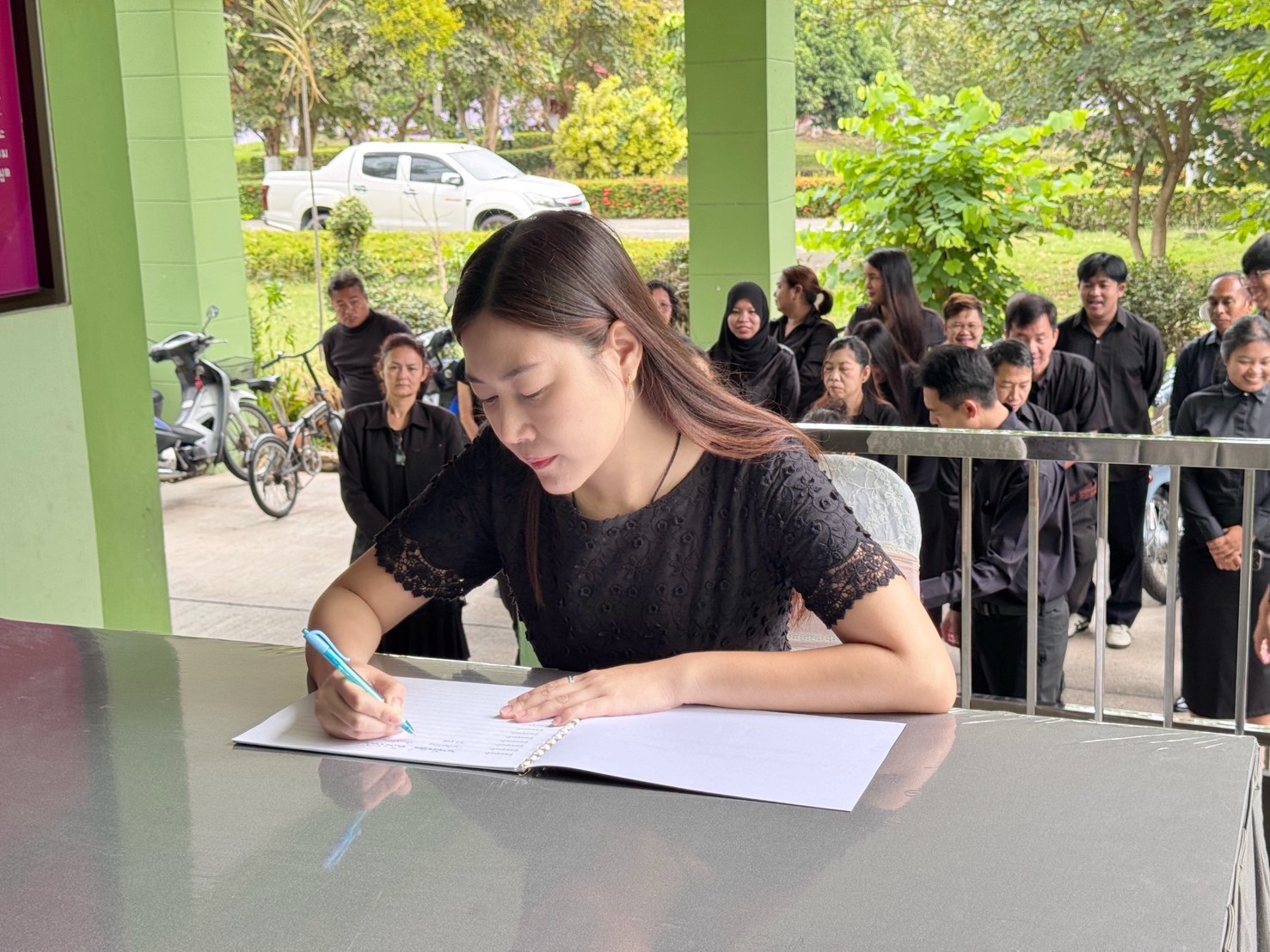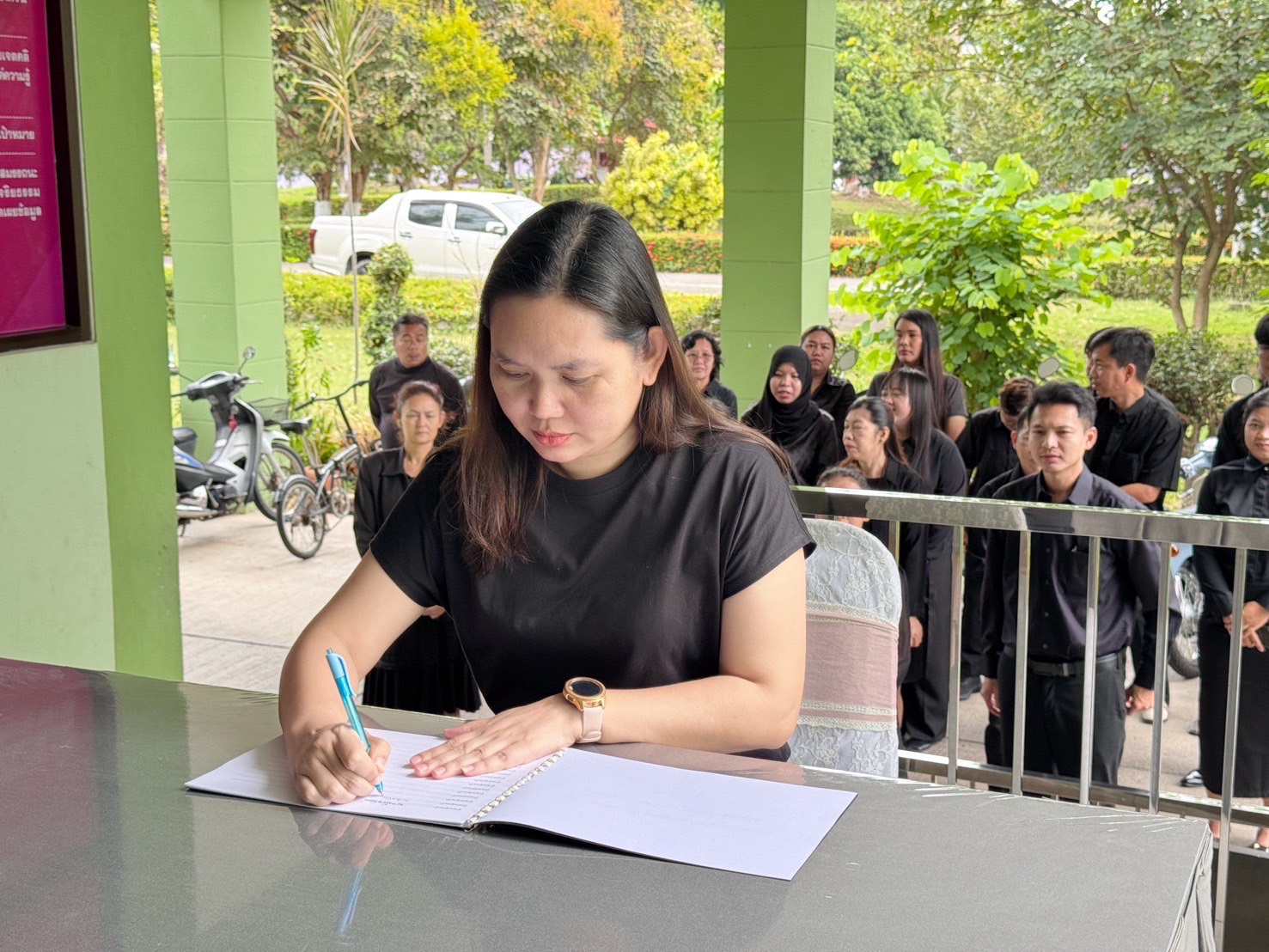 วันที่ 30 ตุลาคม 2568 เวลา 08.30 น. ณ อาคารสำนักงานศูนย์เรียนรู้การพัฒนาสตรีและครอบครัวเฉลิมพระเกียรติสมเด็จพระเทพฯ 36 พรรษา จังหวัดชลบุรี ฝ่ายบริหารงานทั่วไป จัดพิธีร่วมลงนามถวายความอาลัยน้อมสำนึกในพระมหากรุณาธิคุณ สมเด็จพระนางเจ้าสิริกิติ์ พระบรมราชินีนาถ พระบรมราชชนนีพันปีหลวง ในการนี้ นายนัธทวัฒน์ ธนโชติชัยพัชร์ ผู้อำนวยการศูนย์ฯ พร้อมด้วยข้าราชการ และเจ้าหน้าที่ ร่วมลงนามและกล่าวถวายแสดงความอาลัย และมีการยืนสงบนิ่ง เพื่อแสดงความอาลัยน้อมสำนึกในพระมหากรุณาธิคุณอย่างหาที่สุดมิได้