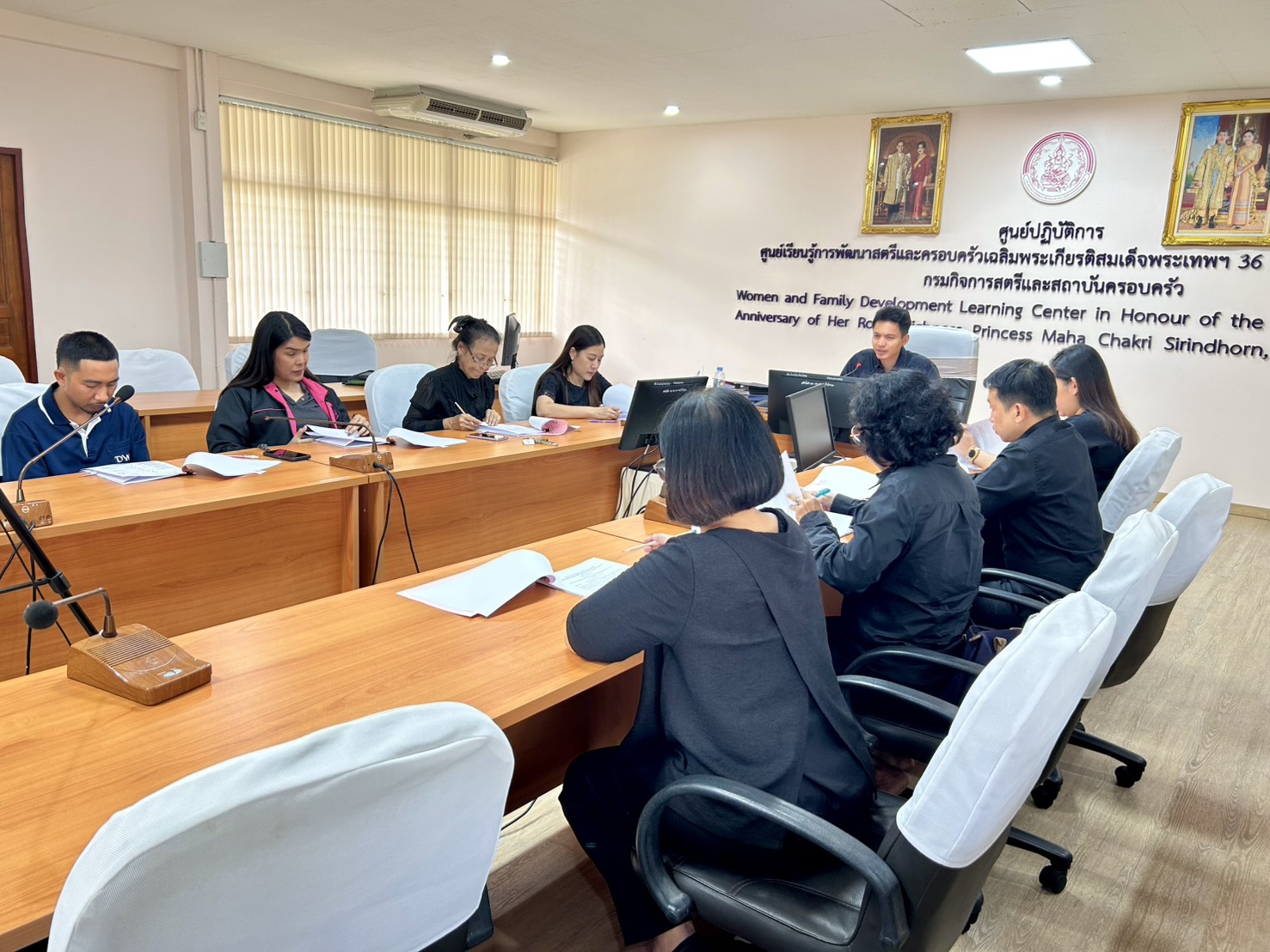 วันที่ 30 ตุลาคม 2568 เวลา 13.30 น. ณ ห้องประชุมศูนย์ปฏิบัติการศูนย์เรียนรู้การพัฒนาสตรีและครอบครัวเฉลิมพระเกียรติสมเด็จพระเทพฯ 36 พรรษา จังหวัดชลบุรี นายนัธทวัฒน์ ธนโชติชัยพัชร์ ผู้อำนวยการศูนย์ฯ เป็นประธานประชุมคณะกรรมการพิจารณาโครงการสนับสนุนเงินทุนประกอบอาชีพมูลนิธิศูนย์ฝึกอาชีพเฉลิมพระเกียรติสมเด็จพระเทพรัตนราชสุดาฯ ครบ 36 พรรษา ครั้งที่ 1/2568 เพื่อพิจารณาคุณสมบัติผู้สมัครโครงการสนับสนุนทุนเรียนดี และวางแผนการดำเนินงานในขั้นตอนการลงพื้นที่เยี่ยมบ้านพิจารณาข้อเท็จจริง โดยมีคณะกรรมการ และครูแผนกเข้าร่วมประชุมฯ
