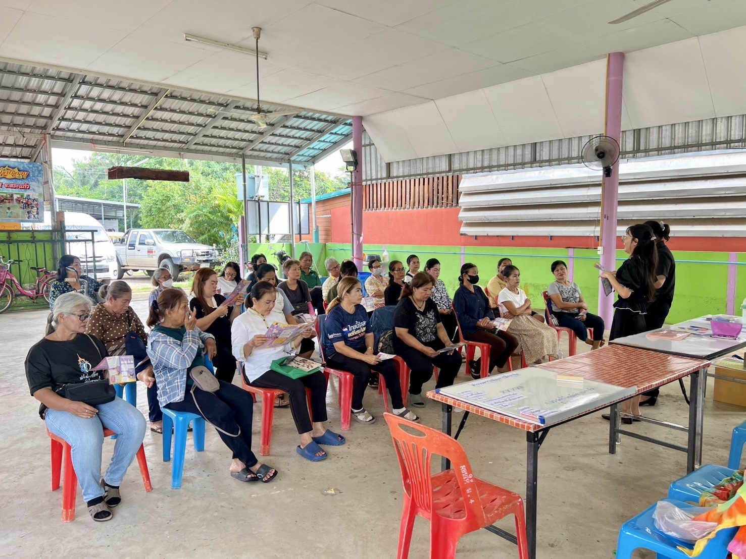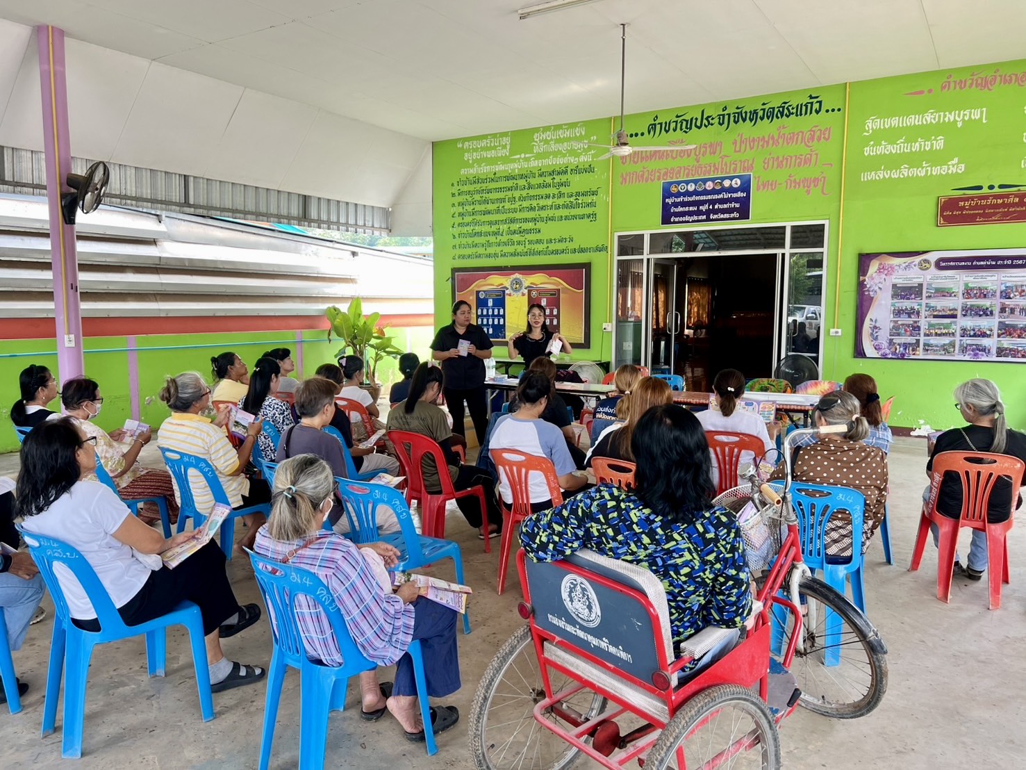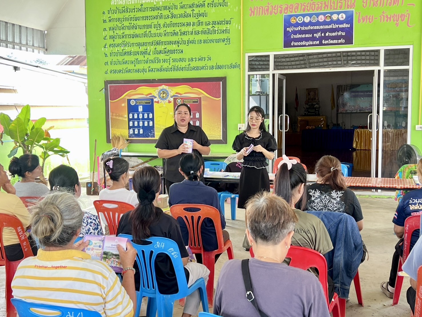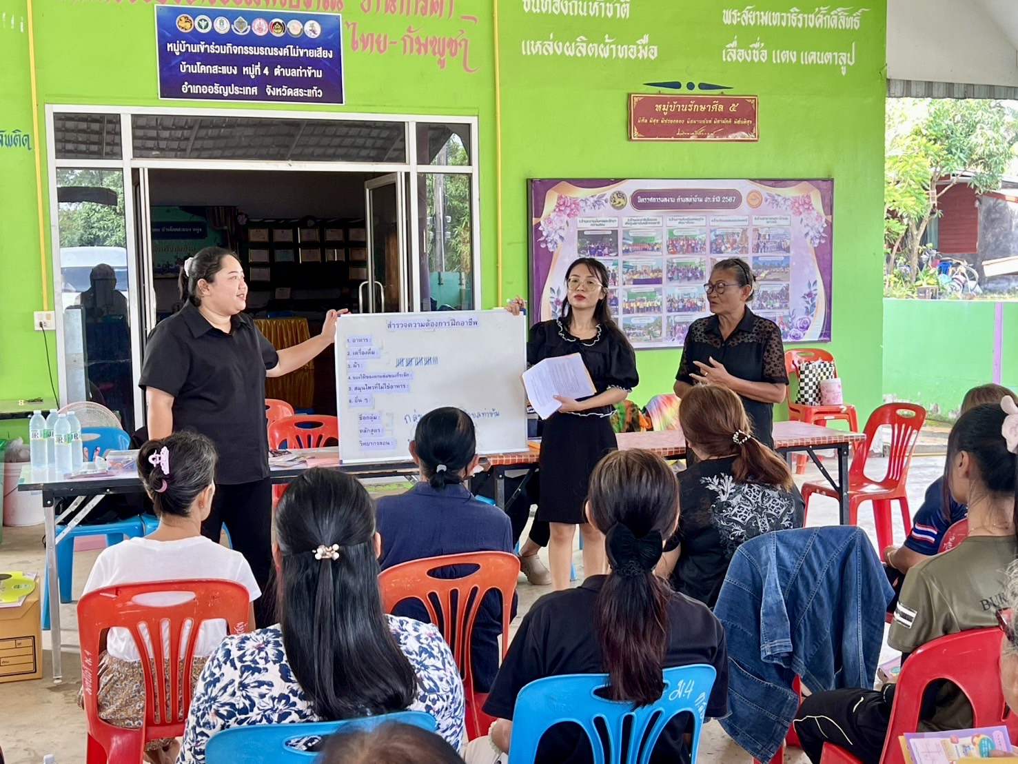 วันที่ 12 พฤศจิกายน 2568 ณ ศาลาประชาคม หมู่ 4 บ้านโคกสะแบง ตำบลท่าข้าม อำเภออรัญประเทศ จังหวัดสระแก้ว นายนัธทวัฒน์ ธนโชติชัยพัชร์ ผู้อำนวยการศูนย์เรียนรู้การพัฒนาสตรีและครอบครัวเฉลิมพระเกียรติสมเด็จพระเทพฯ 36 พรรษา จังหวัดชลบุรี มอบหมายให้ นางสาวณัฏฐนันธ์ ดีดวงพันธ์ นักจัดการงานทั่วไปปฏิบัติการ นางสาวจรีพร อัมพาผล นักพัฒนาสังคม เเละนายอนุรักษ์ ทิพยรักษ์ พนักงานขับรถยนต์ ลงพื้นที่ประชาคม ชี้แจงวัตถุประสงค์และรายละเอียดการเข้าร่วมกิจกรรมสร้างชีวิตใหม่ให้แก่สตรีและครอบครัว ปีงบประมาณ 2569 เพื่อประเมินความพร้อมของกลุ่มอาชีพ และประชาสัมพันธ์การฝึกอบรมอาชีพในสถาบัน ให้แก่กลุ่มสตรี ตำบลท่าข้าม อำเภออรัญประเทศ จังหวัดสระแก้ว