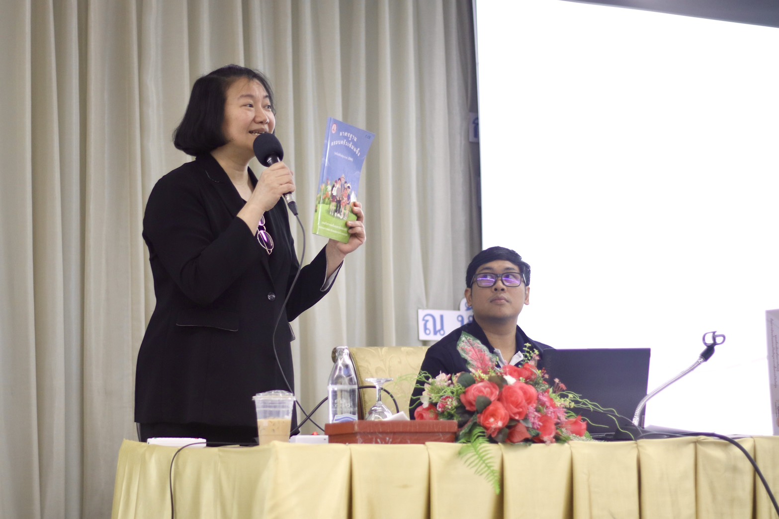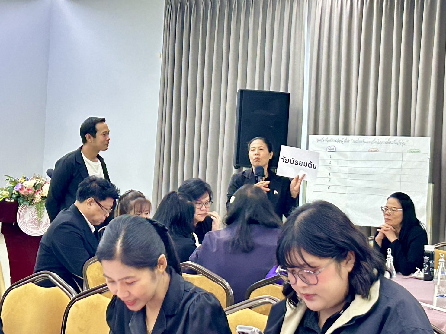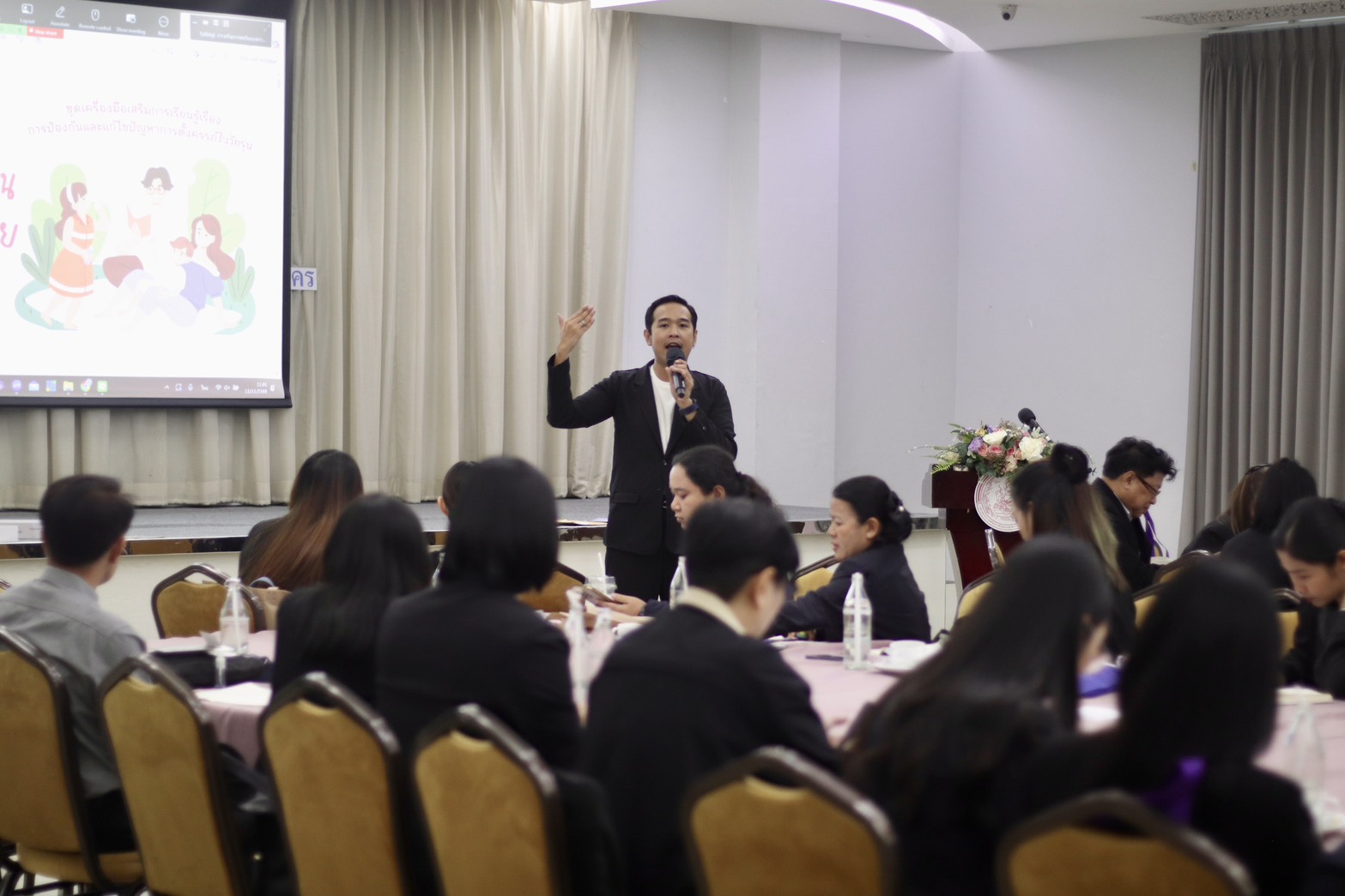 วันที่ 12 พฤศจิกายน 2568 เวลา 09.00 น. ณ โรงแรมเดอะ พาลาสโซ กรุงเทพมหานคร กองยุทธศาสตร์และแผนงาน ร่วมกับกองส่งเสริมสถาบันครอบครัว กองส่งเสริมความเสมอภาคระหว่างเพศ และกองคุ้มครองและพัฒนาอาชีพ จัดประชุมเชิงปฏิบัติการขับเคลื่อนนโยบายด้านสตรี ครอบครัว และความเสมอภาคระหว่างเพศ : จากนโยบายไปสู่การปฏิบัติ โดยรับฟังบรรยาย เรื่อง การส่งเสริมความเข้มแข็งของครอบครัว 7 มิติตามมาตรฐานครอบครัวเข้มแข็ง และการสร้างพื้นที่สร้างสรรค์สำหรับครอบครัวทุกช่วงวัยในชุมชนและดำเนินกิจกรรมกลุ่มเพื่อทดลองใช้ชุดเครื่องมือส่งเสริมการเรียนรู้เรื่องการป้องกันและแก้ไขปัญหาการตั้งครรภ์ในวัยรุ่น ให้แก่ผู้บริหาร พมจ. 76 จังหวัด และ สสว.1-11 ซึ่งจัดขึ้นระหว่างวันที่ 10-12 พฤศจิกายน 2568 ในการนี้ นายนัธทวัฒน์ ธนโชติชัยพัชร์ ผู้อำนวยการศูนย์เรียนรู้การพัฒนาสตรีและครอบครัวฯ จ.ชลบุรี พร้อมด้วยนางสาวรัชดาภรณ์ ดอนมอญ เจ้าหน้าที่ช่วยปฏิบัติงานด้านนักสังคมสงเคราะห์ เข้าร่วมประชุม
