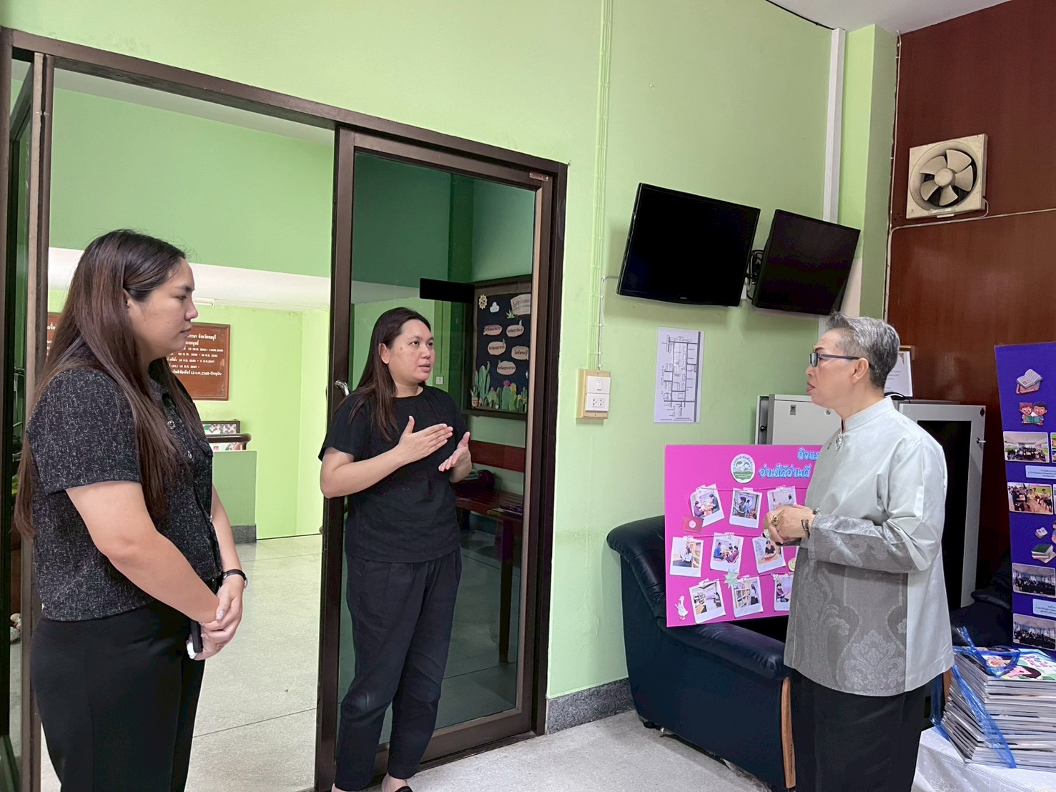 ต้อนรับกรรมการผู้จัดการมูลนิธิหนังสือเพื่อเด็ก เข้าเยี่ยมชมพื้นที่สำหรับจัดกิจกรรมอ่านได้อ่านดี และเข้าเยี่ยมชมการจัดการเรียนการสอนหลักสูตร 5 วัน