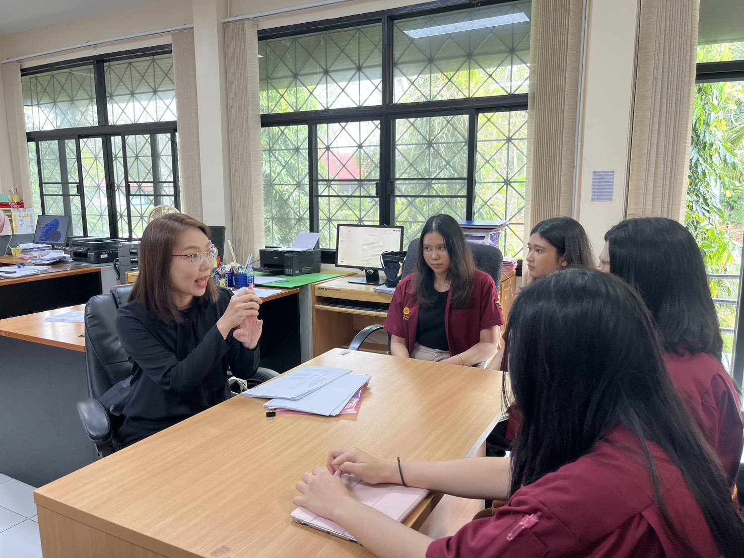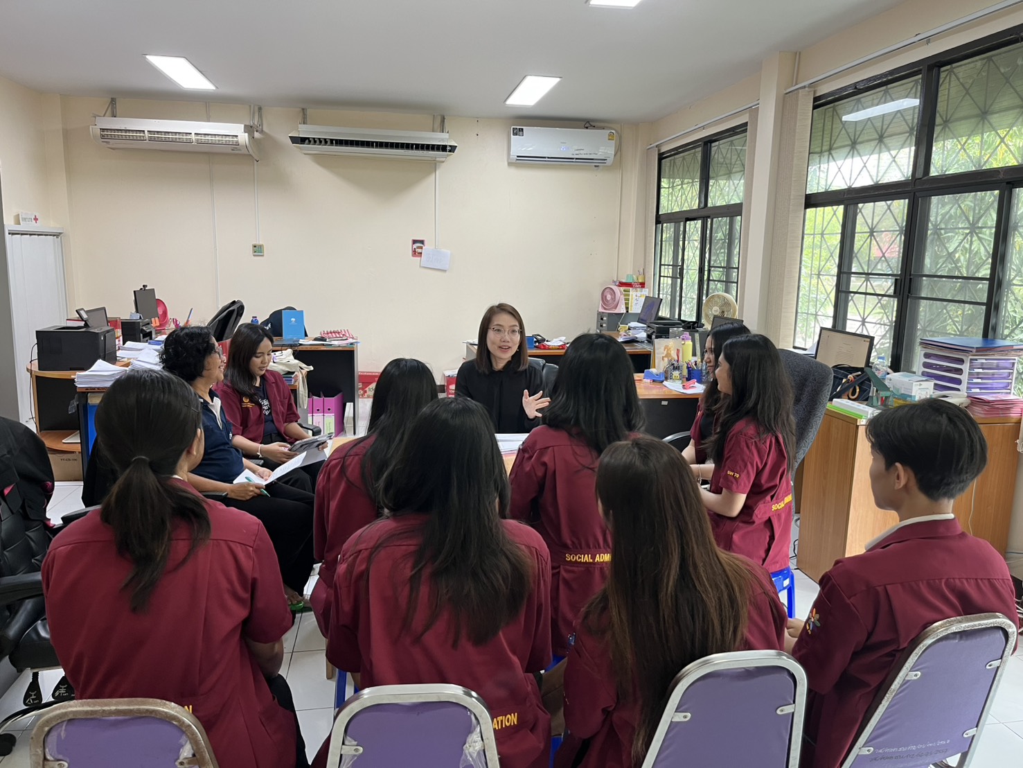 วันที่ 21 มกราคม 2569 นางรินทร์ปภัส เรืองเชาว์หิรัณ นักพัฒนาสังคมชำนาญการ รักษาการในตำแหน่ง ผู้อำนวยการศูนย์เรียนรู้การพัฒนาสตรีและครอบครัวเฉลิมพระเกียรติสมเด็จพระเทพฯ 36 พรรษา จังหวัดชลบุรี มอบหมายให้นางสิราณี คิดหาทอง นักสังคมสงเคราะห์ และนางสาววรรณรวี ซ่อนกลิ่น เจ้าหน้าที่ช่วยปฏิบัติงานด้านนักสังคมสงเคราะห์ เข้าร่วมการประชุมนิเทศงานครั้งที่ 1 ของนักศึกษาฝึกงานคณะสังคมสงเคราะห์ศาสตร์ มหาวิทยาลัยธรรมศาสตร์ เพื่อเพิ่มพูนความรู้ความสามารถในการปฏิบัติงานสังคมสงเคราะห์ การแลกเปลี่ยนเรียนรู้ร่วมกัน และการปฏิบัติงานให้สำเร็จลุล่วงตามเป้าหมาย