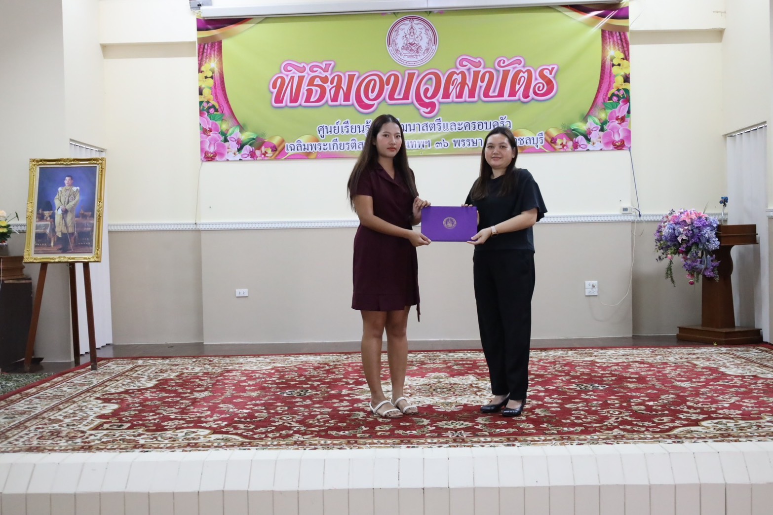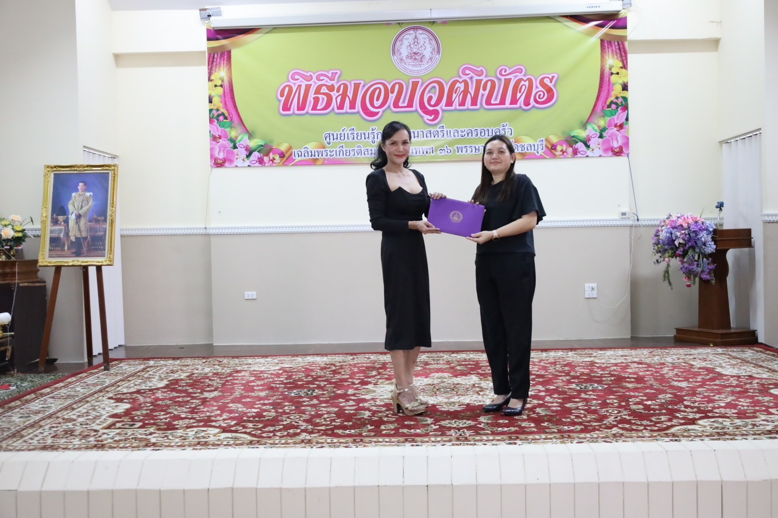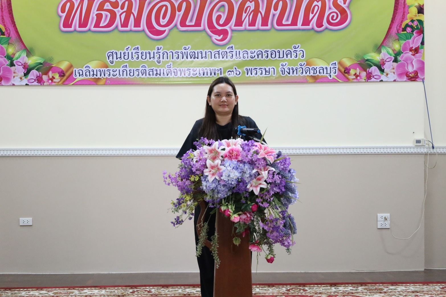 วันที่ 27 กุมภาพันธ์ 2569 ณ อาคารอเนกประสงค์ ศูนย์เรียนรู้การพัฒนาสตรีและครอบครัวเฉลิมพระเกียรติสมเด็จพระเทพฯ 36 พรรษา จังหวัดชลบุรี นางรินทร์ปภัส เรืองเชาว์หิรัณ นักพัฒนาสังคมชำนาญการ รักษาการในตำแหน่ง ผู้อำนวยการศูนย์ฯ เป็นประธานในพิธีมอบวุฒิบัตร พร้อมทั้งให้โอวาทแก่ผู้สำเร็จการฝึกอบรมอาชีพ หลักสูตรระยะสั้น 5 วัน และหลักสูตรระยะสั้น 2 วัน โดยมีผู้สำเร็จการฝึกอบรมอาชีพ จำนวนทั้งสิ้น 46 คน ดังนี้