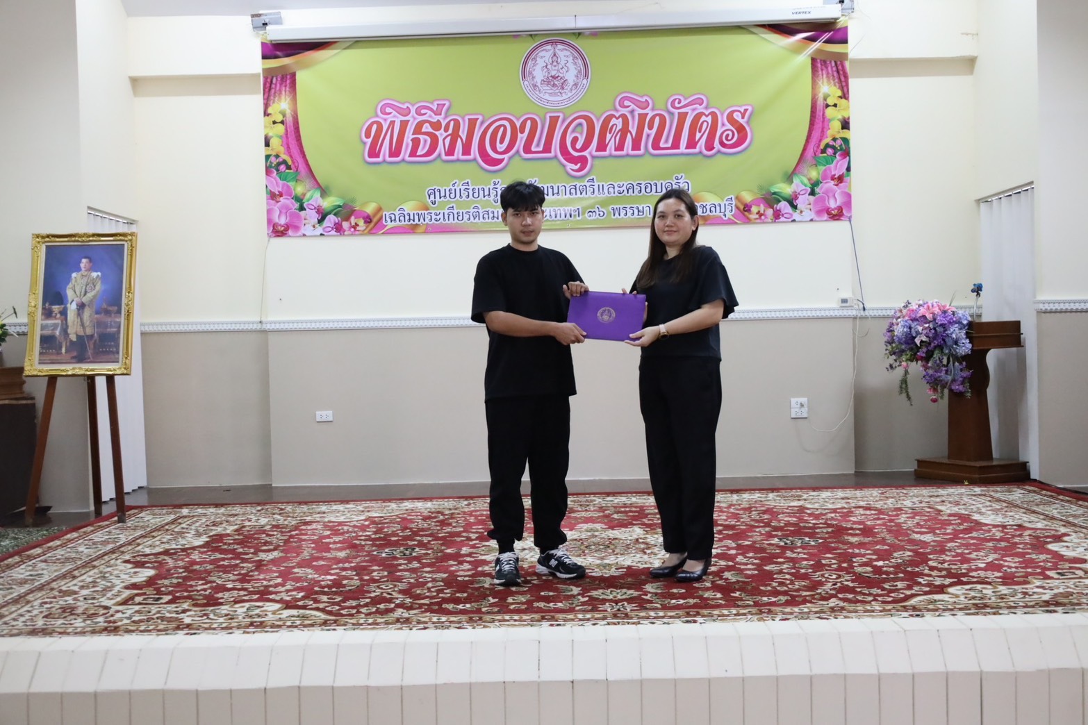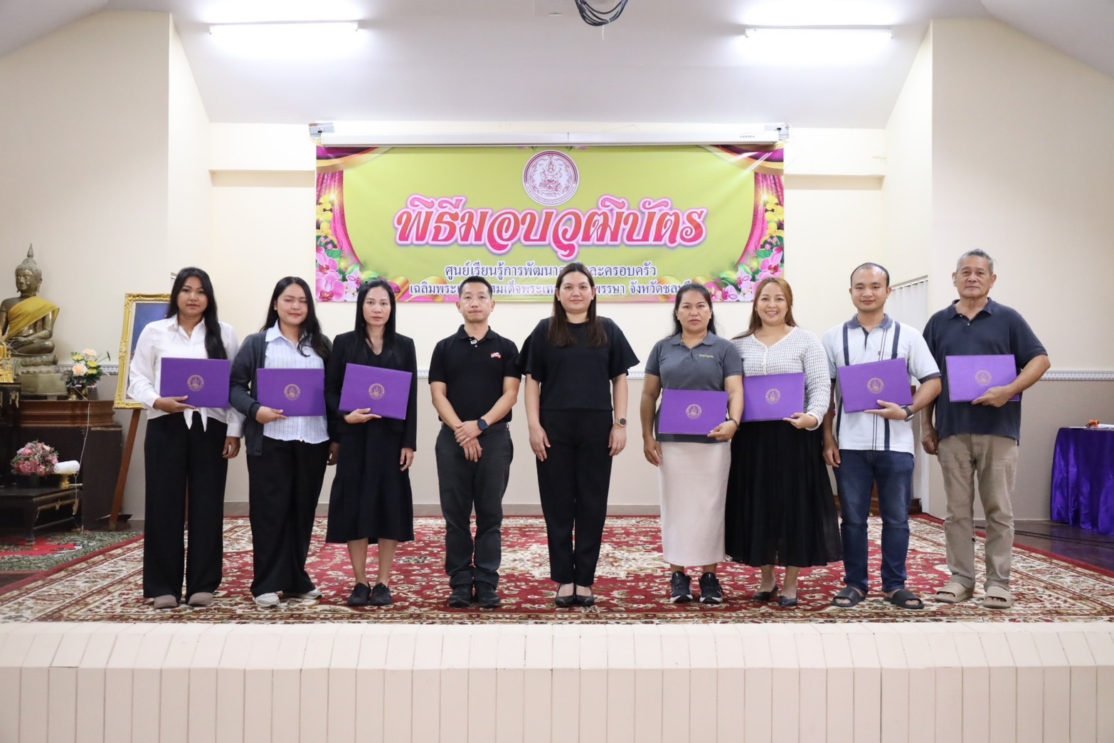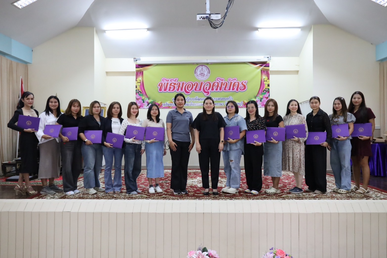 วันที่ 27 กุมภาพันธ์ 2569 ณ อาคารอเนกประสงค์ ศูนย์เรียนรู้การพัฒนาสตรีและครอบครัวเฉลิมพระเกียรติสมเด็จพระเทพฯ 36 พรรษา จังหวัดชลบุรี นางรินทร์ปภัส เรืองเชาว์หิรัณ นักพัฒนาสังคมชำนาญการ รักษาการในตำแหน่ง ผู้อำนวยการศูนย์ฯ เป็นประธานในพิธีมอบวุฒิบัตร พร้อมทั้งให้โอวาทแก่ผู้สำเร็จการฝึกอบรมอาชีพ หลักสูตรระยะสั้น 5 วัน และหลักสูตรระยะสั้น 2 วัน โดยมีผู้สำเร็จการฝึกอบรมอาชีพ จำนวนทั้งสิ้น 46 คน ดังนี้