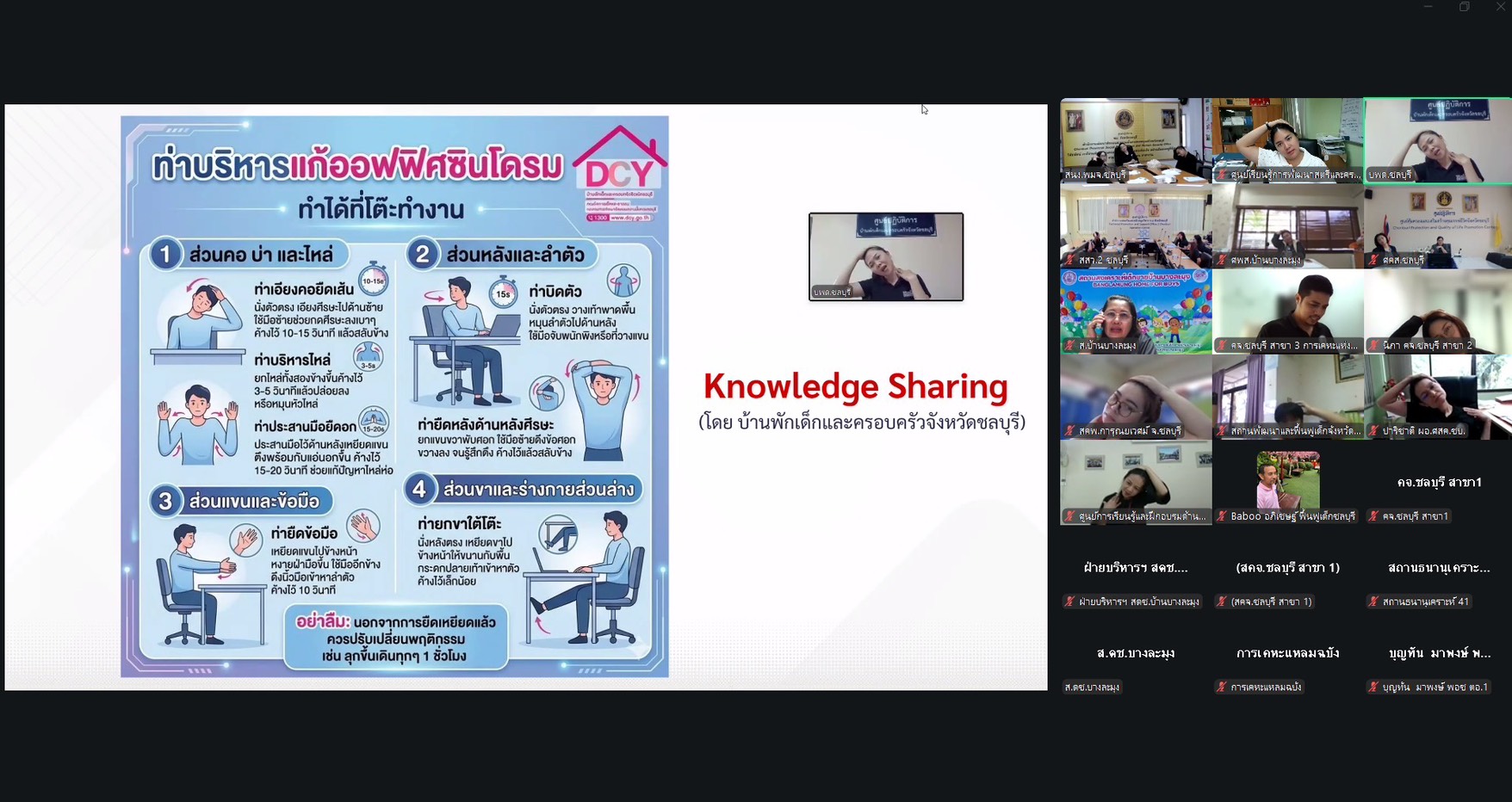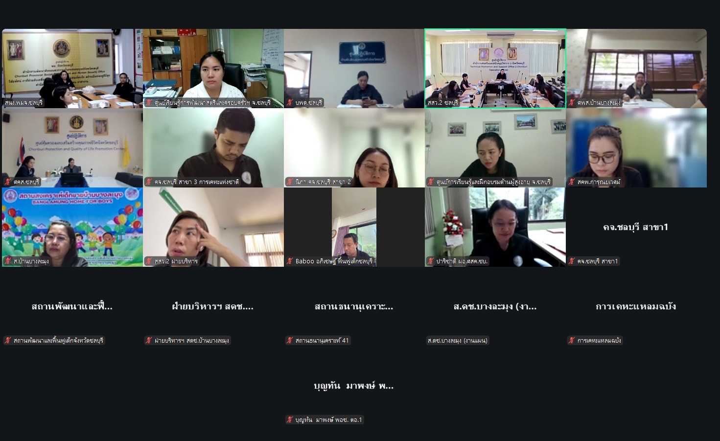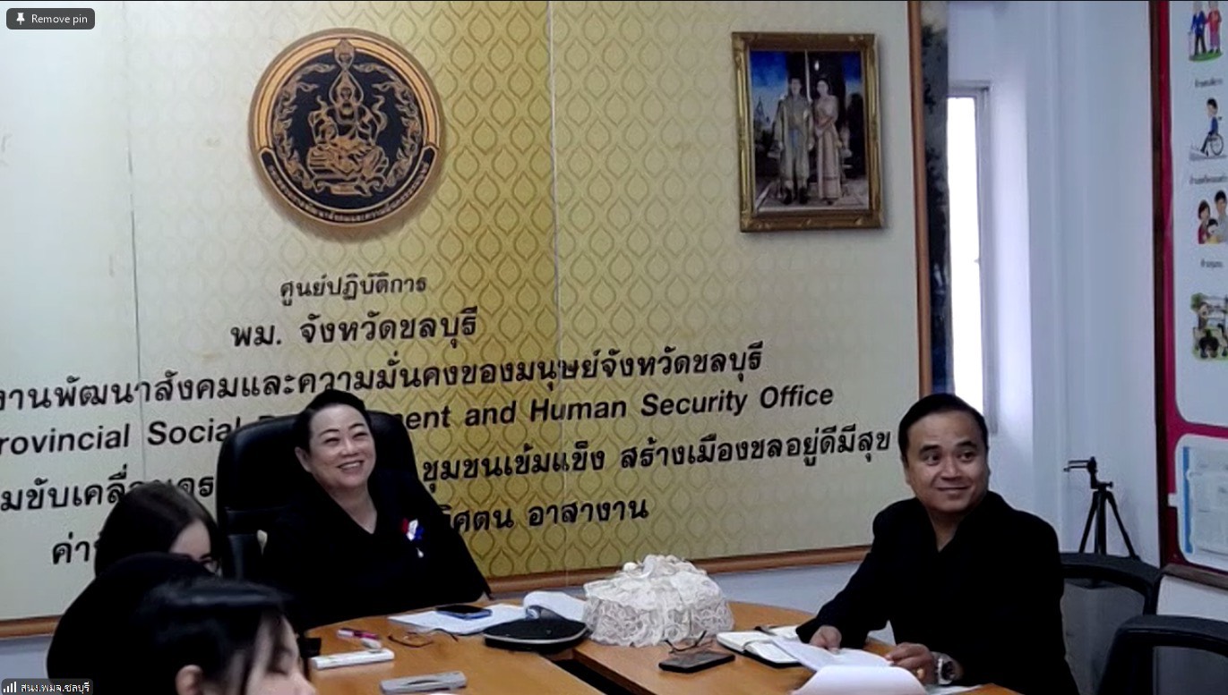 วันที่ 23 เมษายน 2569 เวลา 09.30 น. นางสาวจันจิรา ไทยบัณฑิตย์ พัฒนาสังคมและความมั่นคงของมนุษย์จังหวัดชลบุรี เป็นประธานการประชุมทีม พม.ใกล้คุณ จังหวัดชลบุรี ครั้งที่ 7/2569 เพื่อร่วมกันพิจารณาการขับเคลื่อนงาน “ศูนย์ร่วมสุขจังหวัดชลบุรี” และการขยายพื้นที่การดำเนินงาน “ศูนย์ร่วมสุข” ประจำปีงบประมาณ พ.ศ. 2570 ในการนี้นางสาวปาริชาติ พรหมสุวรรณ ผู้อำนวยการศูนย์เรียนรู้การพัฒนาสตรีและครอบครัวเฉลิมพระเกียรติสมเด็จพระเทพฯ 36 พรรษา จังหวัดชลบุรี พร้อมด้วยนางสาวภัทราภรณ์ กิจมี นักวิเคราะห์นโยบายและแผน เข้าร่วมการประชุมฯ ผ่านระบบ Zoom meeting