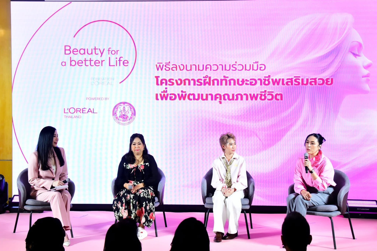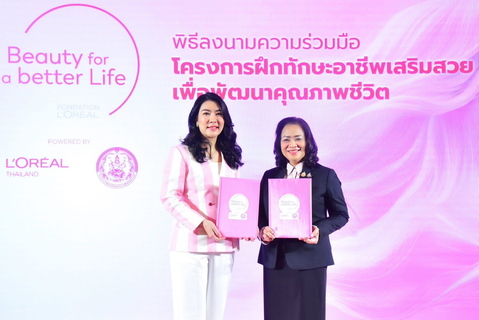 วันที่ 27 เมษายน 2569 ณ ห้อง Studio R6 ชั้น 4 โรงแรมเรเนซองส์ กรุงเทพฯ ราชประสงค์ นางสาวปาริชาติ พรหมสุวรรณ ผู้อำนวยการศูนย์เรียนรู้การพัฒนาสตรีและครอบครัวเฉลิมพระเกียรติสมเด็จพระเทพฯ 36 พรรษา จังหวัดชลบุรี ร่วมเป็นเกียรติในพิธีลงนามบันทึกความเข้าใจขยายระยะเวลาความร่วมมือ (MOU) โครงการฝึกทักษะเสริมสวย เพื่อพัฒนาคุณภาพชีวิต (Beauty for a Better Life) ระหว่าง บริษัท ลอรีอัล (ประเทศไทย) จำกัด และกรมกิจการสตรีและสถาบันครอบครัว กระทรวงการพัฒนาสังคมและความมั่นคงของมนุษย์ ร่วมกันขับเคลื่อนโครงการฝึกทักษะอาชีพเสริมสวย เพื่อพัฒนาคุณภาพชีวิต (Beauty for a Better life) ระยะเวลา 5 ปี (2ก.ค.2569-1 ก.ค. 2574) อบรมให้แก่กลุ่มเป้าหมายของศูนย์เรียนรู้การพัฒนาสตรีและครอบครัวที่เป็นสตรีที่ขาดอาชีพ รายได้ หรือเป็นผู้ประสบปัญหาทางสังคม ที่มีอายุระหว่าง 15 – 50 ปี จำนวน 1,500 คน ให้สามารถมีอาชีพ สร้างรายได้ เลี้ยงดูตนเองและครอบครัวได้อย่างมั่นคงในอนาคต โดยมี นางจตุพร โรจนพานิช อธิบดีกรมกิจการสตรีและสถาบันครอบครัว และคุณอรอนงค์ ประทักษ์พิริยะ ผู้อำนวยการฝ่ายกิจการองค์กรและสื่อสารสัมพันธ์ บริษัท ลอรีอัล (ประเทศไทย) จำกัด ร่วมลงนามบันทึกความเข้าใจฯ พร้อมทั้งคณะผู้บริหารบริษัท ลอรีอัล (ประเทศไทย) จำกัด นางสุดา สุหลง รองอธิบดีกรมกิจการสตรีและสถาบันครอบครัว ผู้บริหารกรม.สค. เจ้าหน้าที่ที่เกี่ยวข้อง และสื่อมวลชน เข้าร่วมงาน